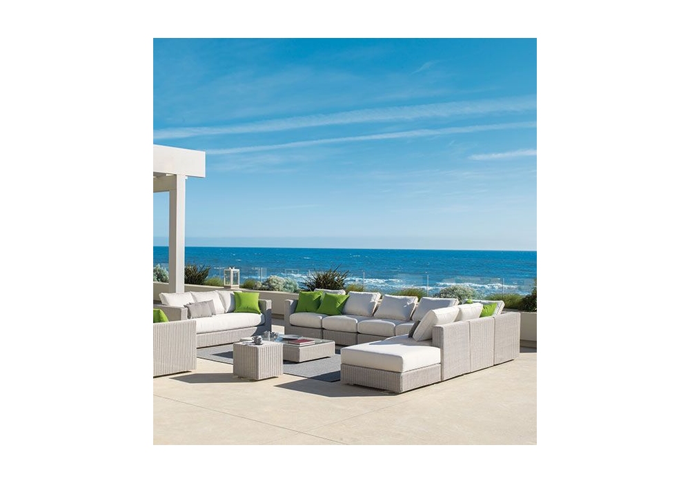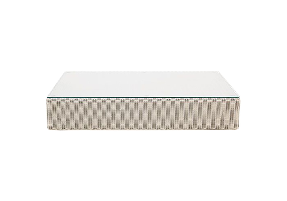 Cube, hergestellt und signiert von Ethimo, ist ein viereckiger Couchtisch, der durch eine Schale aus gewebter Etwick-Faser und eine Glasplatte strukturiert ist. Cube ist in verschiedenen Größen und Ausführungen erhältlich.