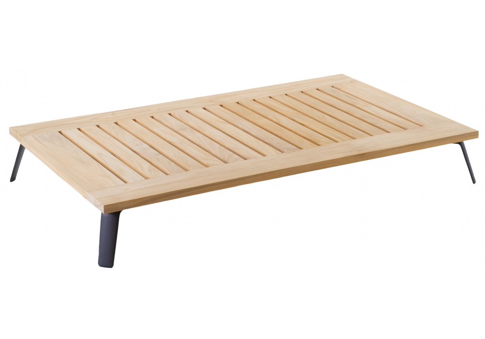 Welcome, entworfen und hergestellt von Unopiù, ist ein viereckiger Outdoor-Couchtisch mit Teakholzplatte und Aluminiumfüßen. Welcome ist in verschiedenen Modellen erhältlich.