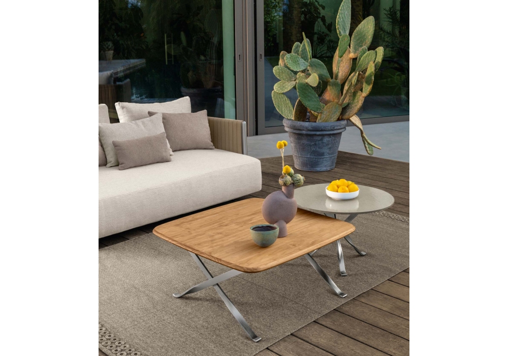 George, von Ludovica + Roberto Palomba für Talenti entworfen, ist eine kleine Tischkollektion für den Außenbereich mit einer Struktur aus Edelstahl. Tischplatte in folgenden Ausführungen erhältlich: Accoya-Holz in natürlicher Teakfarbe und Lavastein in verschiedenen Farben erhältlich.