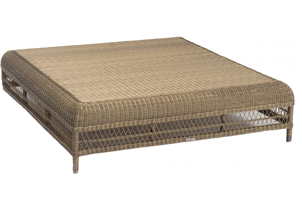 Malibu, von Stephane De Winter für Manutti entworfen, ist ein Couchtisch mit Struktur aus Korbgeflecht und optionaler Platte aus gehärtetem Glas.