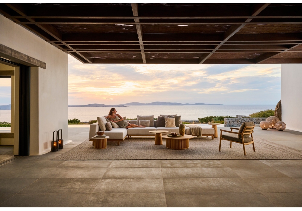 Otto, von Marc Merckx für Tribù entworfen, ist ein Couchtisch mit Teakholzgestell mit Rillenmuster und Platte, erhältlich in verschiedenen Materialien. Otto wird in verschiedenen Größen hergestellt.