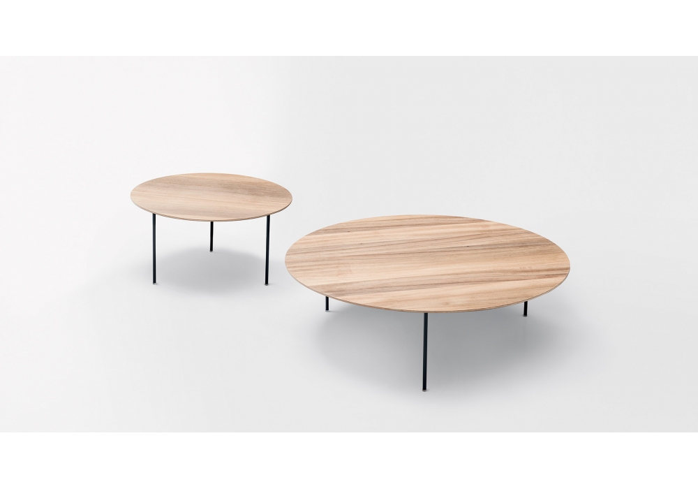 Elio, entworfen und hergestellt von CRS Paola Lenti, ist ein Couchtisch mit runder Platte, der in zwei Größen erhältlich ist. Struktur aus AISI 316 Edelstahl mit matt lackierter Graphitfarbe, Spitzen aus Kunststoff. Holzplatte verfügbar in 2 Ausführungen.