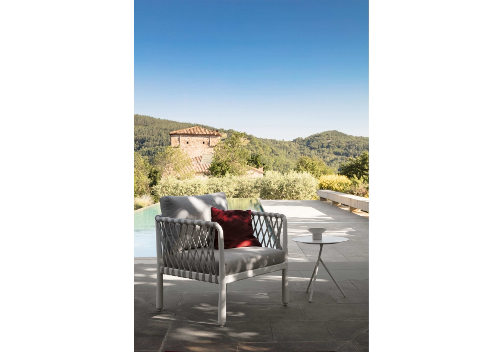 Sofy von Talenti entworfen, ist ein Couchtisch aus Aluminium, erhältlich in verschiedenen Ausführungen.