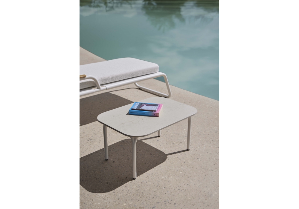 Capa von Søren Rose für Gandia Blasco entworfen, ist ein Couchtisch aus beschichtetem, thermolackiertem Stahl. Die Tischplatte besteht Porzellan. In verschiedenen Ausführungen erhältlich.