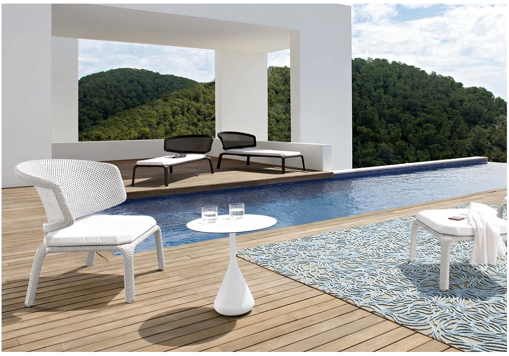 Seashell, entworfen von Jean-Marie Massaud für Dedon, ist ein Beistelltisch mit Aluminium- und Faserstruktur, der Teil der Seashell-Kollektion ist.