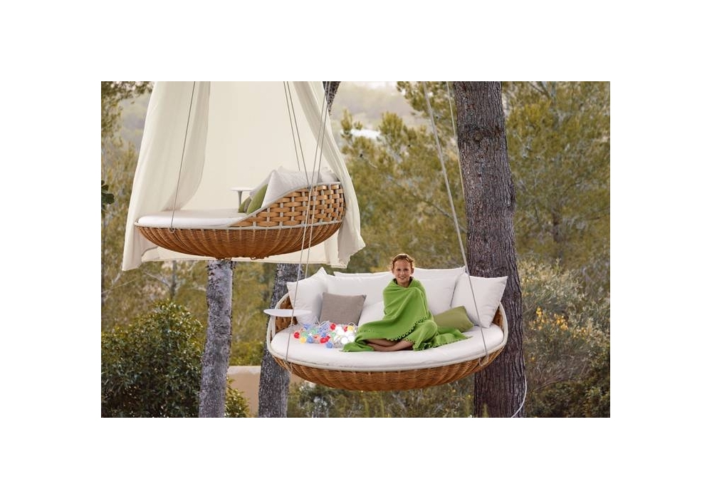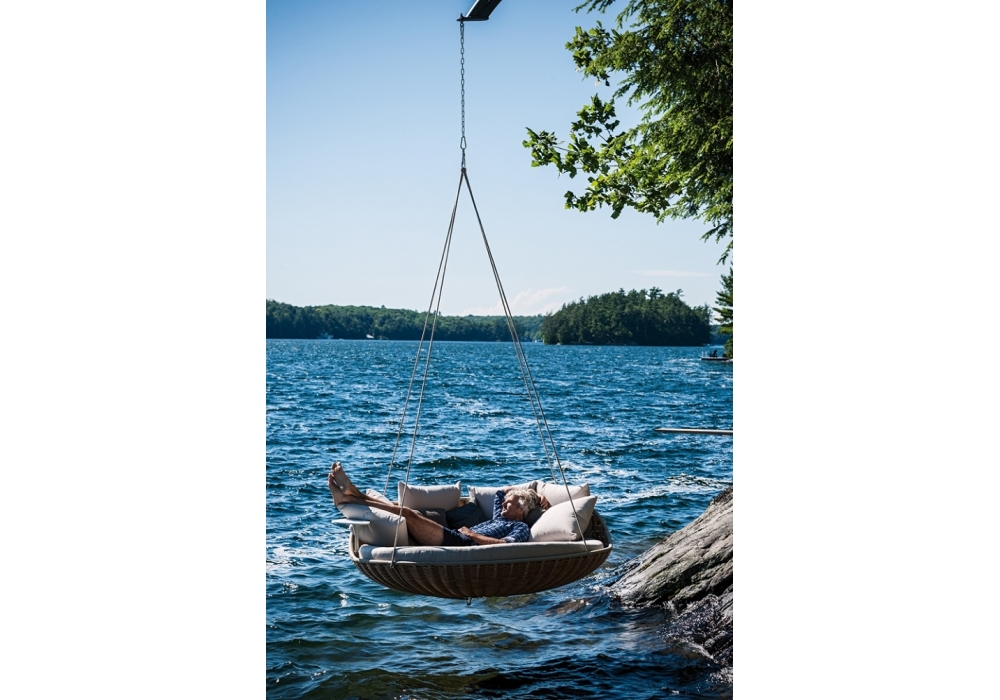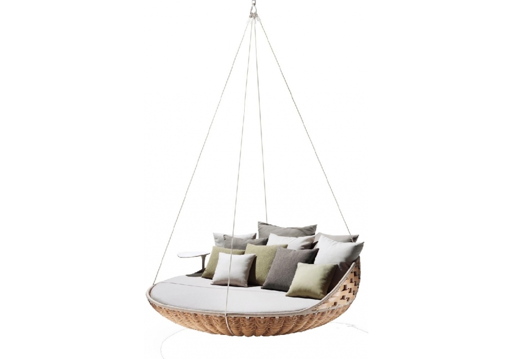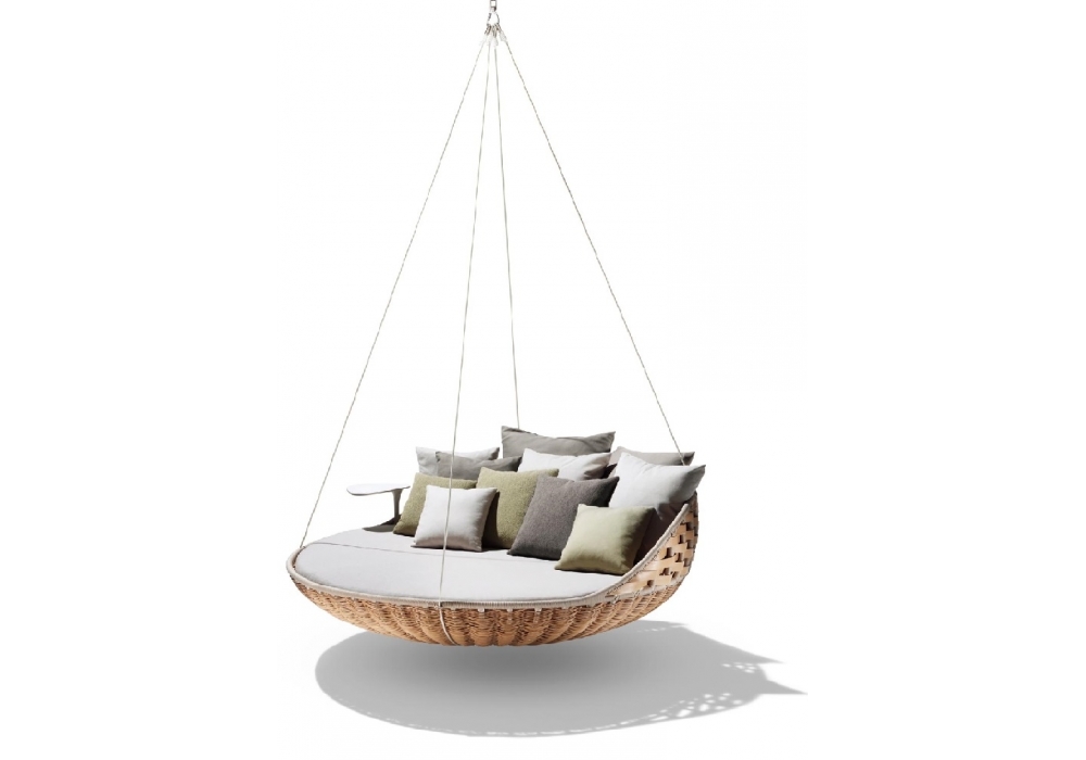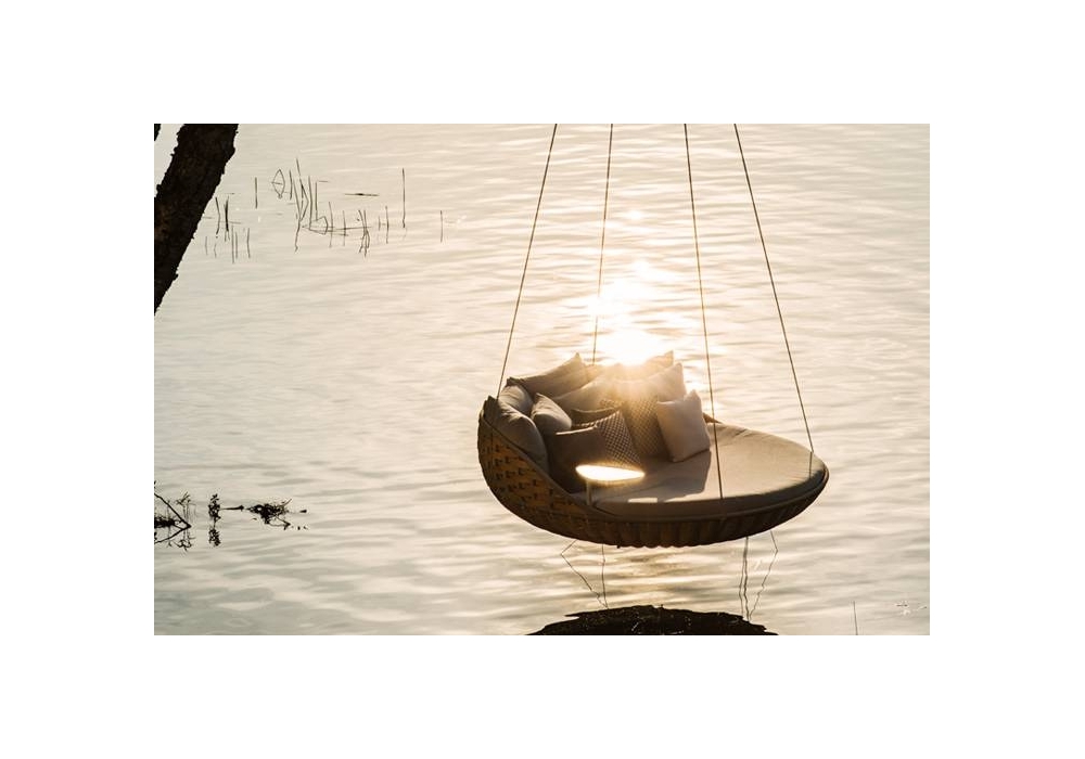 Obwohl er einen Teil seines Namens und den Großteil seiner Konstruktion mit dem kultigen NESTREST Hanging Lounger von DEDON teilt, ist der neue SWINGREST von Daniel Pouzet eine Klasse für sich. Der umwerfende Hanging Lounger SWINGREST ist eines der ersten Produkte, das im Dedon Island Resort entstand, unserem Outdoor Living-Labor auf Siargao, Philippinen. Pouzet ist Co-Architekt und Designer von Dedon Island und fand seine Inspiration für SWINGREST in den außergewöhnlich hohen Decken der Villen auf Dedon Island. Den korbähnlichen Unterteil entnahm er seiner früheren Kreation NESTREST. Auf dieser Basis schaffte er ein neues Element, das noch mehr Raum bietet (für noch mehr Personen), während es weniger Platz in Anspruch nimmt. SWINGREST kann entweder auf der Terrasse, auf der Veranda oder im Inneren des Hauses aufgehängt werden und überzeugt vor allem durch die Klarheit und die Schlichtheit seines Konzepts. Pouzet entschied sich für ein unkompliziertes Produkt und konzentrierte sich auf verfeinerte Designdetails. So entwickelte er beispielsweise die elegante Aufhängung des SWINGREST, seine um 180 ° schwenkbare Tischplatte und das spezielle Gewebe, das sich um die freigelegten Rohre wickelt. SWINGREST ist in Natural gefärbtem Geflecht erhältlich und ist optional mit einem Stoffvorhang ausgestattet, der Schatten spendet und Privatsphäre schafft, während man von innen problemlos nach außen blicken kann.