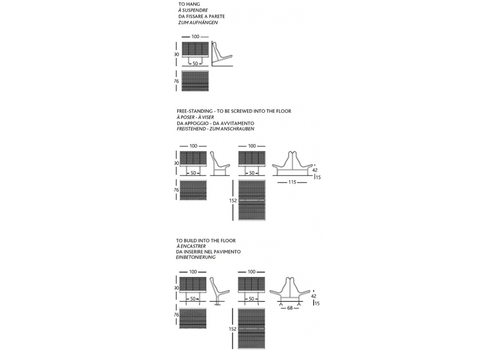 Catalano von Oscar Tusquets & Lluís Clotet für BD Barcelona entworfen, ist eine Bank mit Sitz aus Stahlrohr. Erhältlich in verschiedenen Varianten.