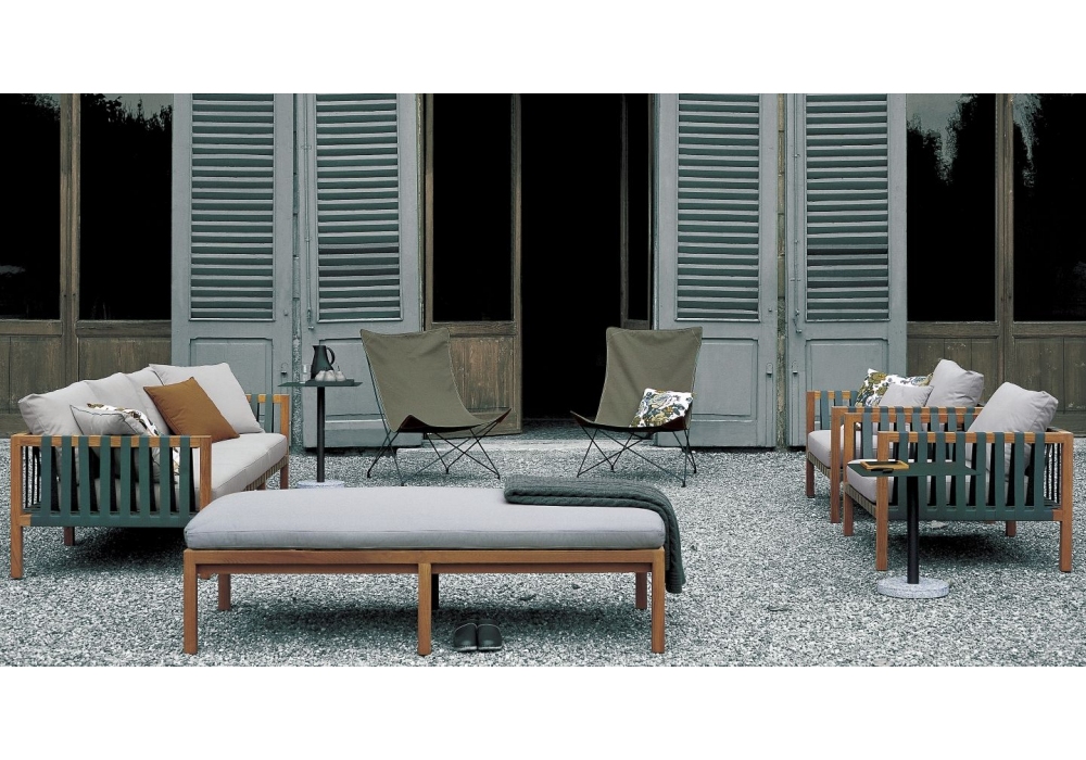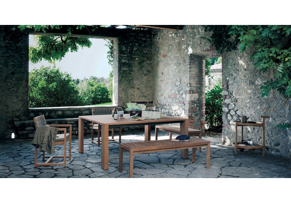 Network von Rodolfo Dordoni für Roda entworfen, ist eine Außenbank aus Teakholz. Es ist in verschiedenen Größen erhältlich.