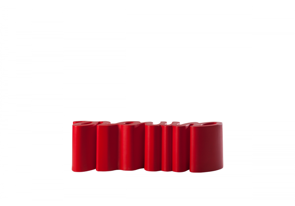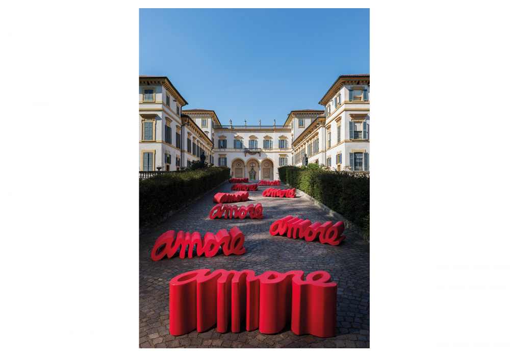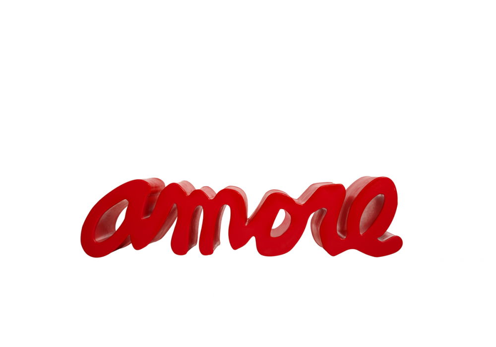 Amore von Giò Colonna Romano für Slide entworfen, ist eine Bank mit starker visueller Wirkung, bei der ein Wort zu einem Designelement wird und sich materialisiert. Erhältlich in verschiedenen Ausführungen