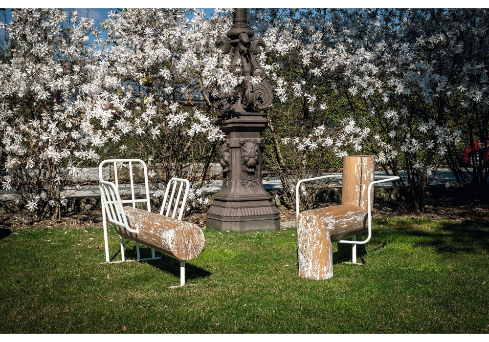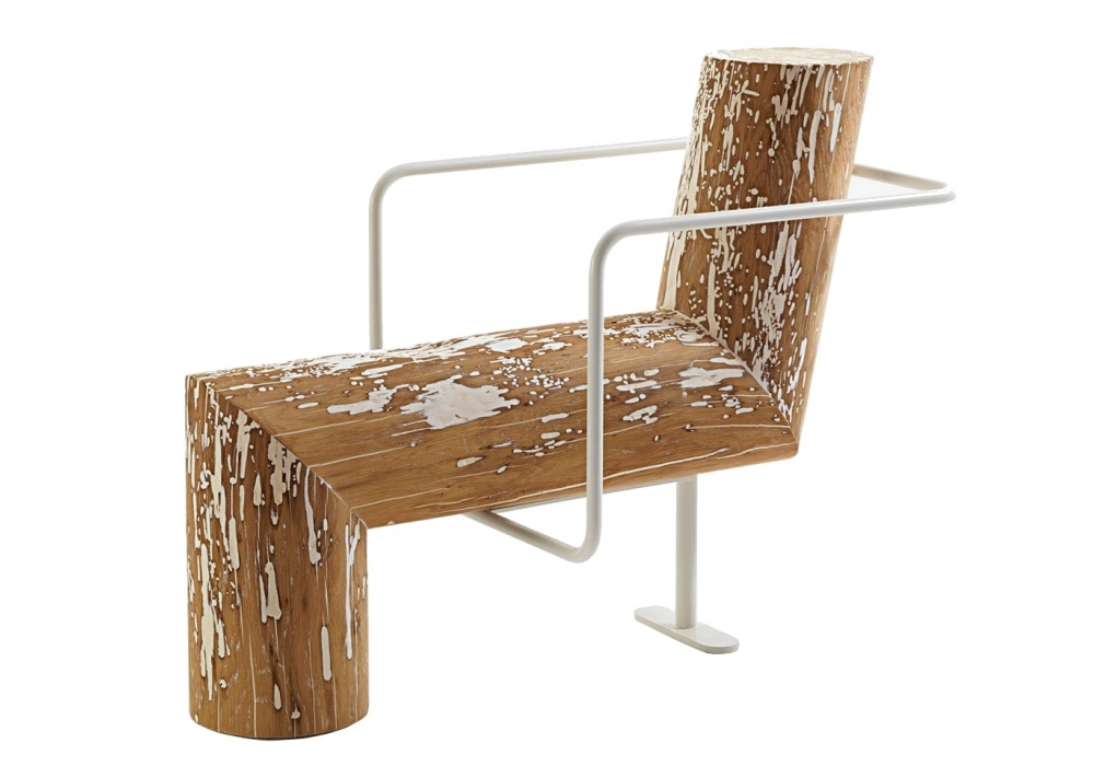 Anti-Comfort Lei & Lui von Andrea Branzi für Riva 1920 entworfen, ist eine Bank aus massivem Briccola-Holz mit Eisenstruktur, die als Rückenlehne und Armlehnen dient. Verfügbar in zwei mehreren Versionen.
