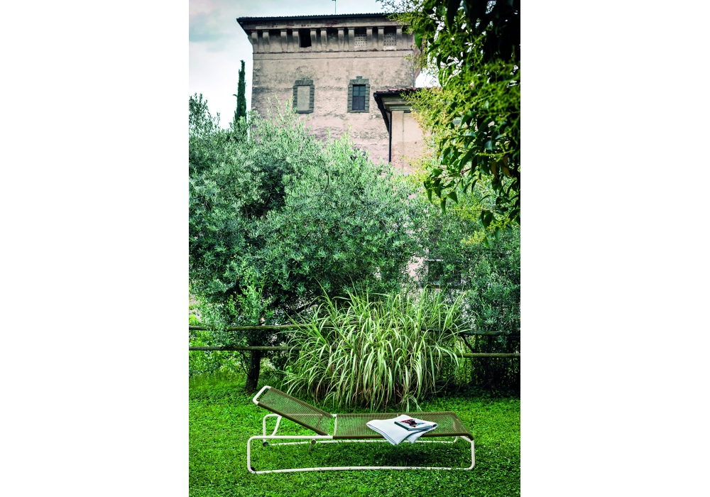 Harp 304 is an outdoor sunlounger deisgned by Rodolfo Dordoni for Roda. The classic string chair finds a new outdoor dimension, where polyester trails its infinite filaments around a tubular stainless steel structure in one continuous outline. Harp is a celebration of a craft manufacturing: a never-ending weave of cords that twine the stainless steel frame drawing lines that look continuous to the human eye. The structure is made in stainless steel welded by hand, and the cords are in a double polyester twisted thread with a cotton finishing. Reclining back: 3 positions.