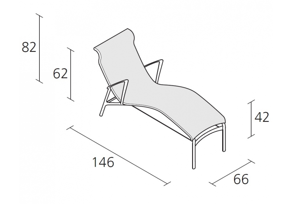 439 Longframe Colors, entworfen von Alberto Meda für Alias, ist eine Chaiselongue mit Armlehne aus stranggepresster Aluminiumstruktur, Sitz und Rückenlehne aus feuerfestem Netz, erhältlich in verschiedenen Ausführungen. Schwarzer Kevlar-Stützdraht.