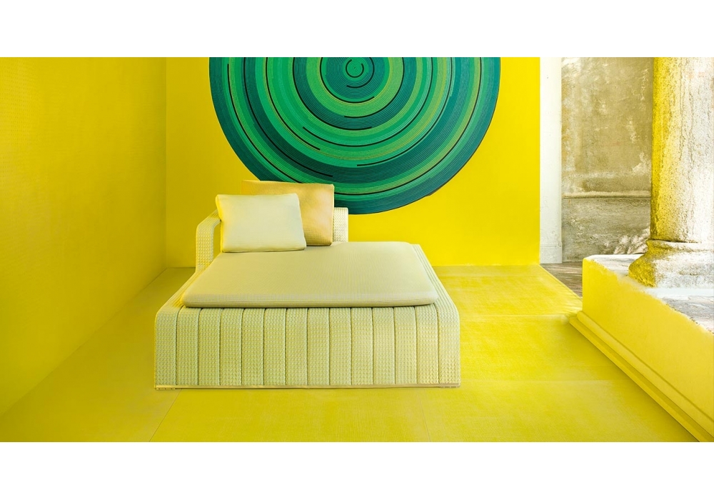 Frame von Francesco Rota für Paola Lenti entworfen, ist eine Chaiselongue für den Außenbereich, die in verschiedenen Ausführungen erhältlich ist. Schale und Sitzpolster sind in mehreren Polstern erhältlich.