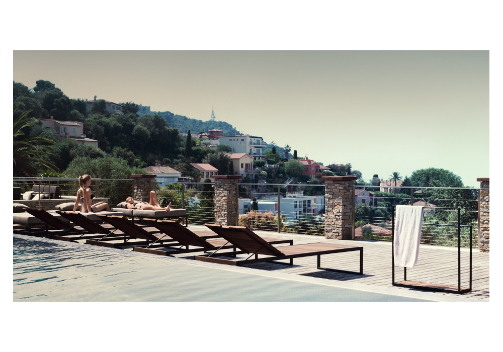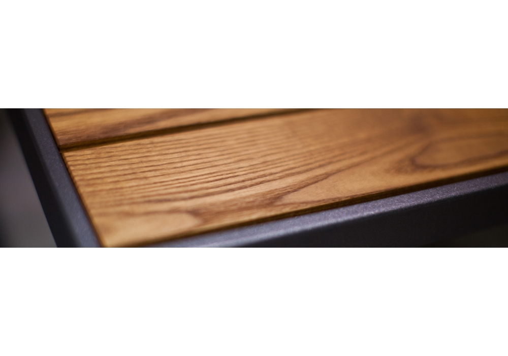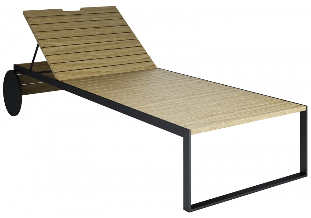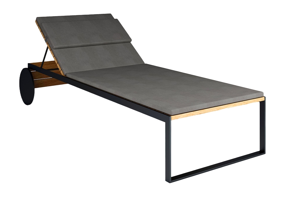 Garden Lounger von Broberg & Ridderstråle für Röshults entworfen, ist eine Sonnenliege mit einer Struktur aus anthrazitfarbenem Edelstahl und Teakholz. Als Zubehör ist es möglich, ein Kissen in verschiedenen Polsterungen hinzuzufügen.