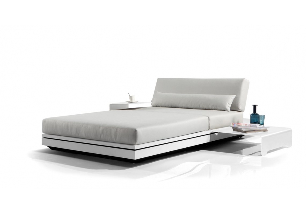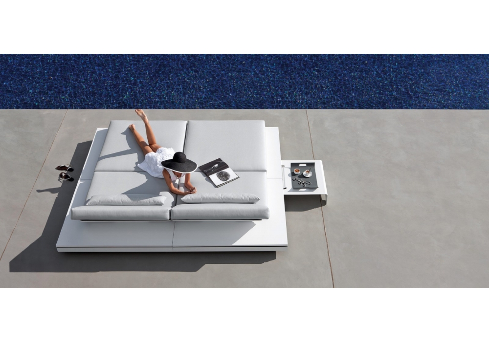 Elements, von Gerd Couckhuyt für Manutti entworfen, ist ein Daybed mit schwarzer Basis, weißer Rahmen, Topplatte in Quaryl® und Polsterung in Stoff. Verstellbare Rückenlehnen und mittels einer Rille verschiebbare Accessoires wie eine Fußbank und ein Beistelltisch, verwandeln diese Insel in einen Ort der Ruhe und Entspannung. Ein schlanker Streifen aufleuchtender LEDs verleiht Elements eine schwebende Anmutung. Maßvollen Farben und nachhaltigen Materialien mit einem weichen Touch wie Quaryl®, verleihen dem Modell seinen eleganten Stil und gewähren höchsten Sitzkomfort. Polsterung Verfügbar in mehreren Ausführungen.