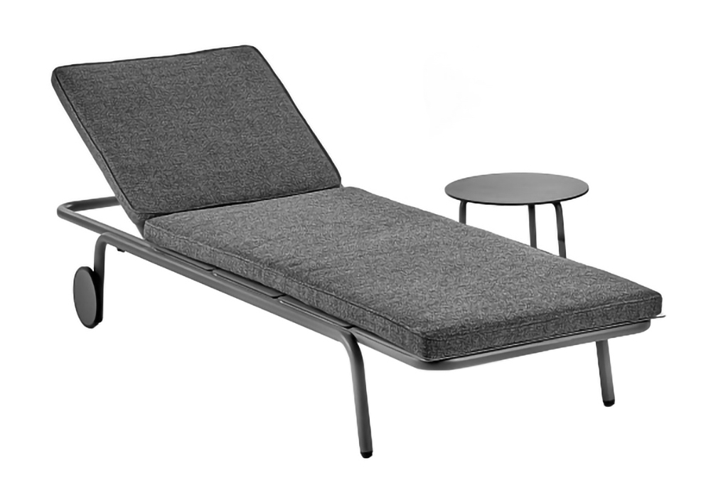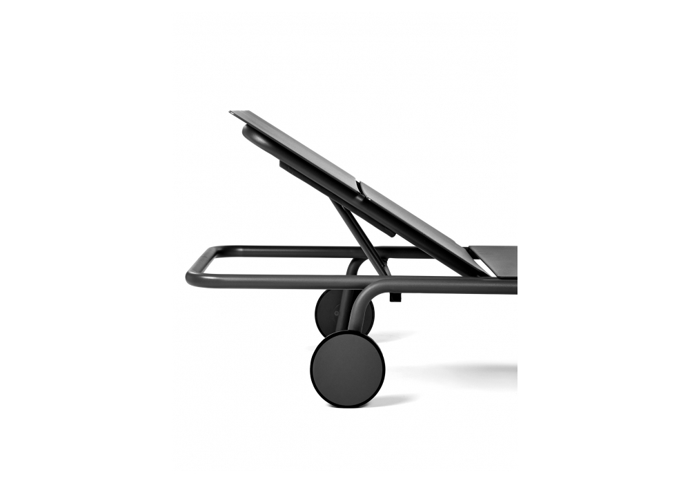 August von Vincent Van Duysen für Serax entworfen, ist eine Sonnenliege für den Außenbereich mit viereckiger Struktur aus Aluminium in den Ausführungen; grüner, schwarzer oder sandiger Eukalyptus. Struktur mit Rädern ausgestattet, um die Bewegung zu erleichtern. August ist in der Version mit oder ohne Kissen erhältlich.