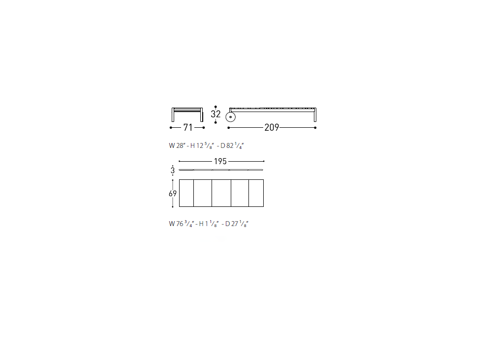 | Abmessungen | 71 x 209 x H 32 cm |