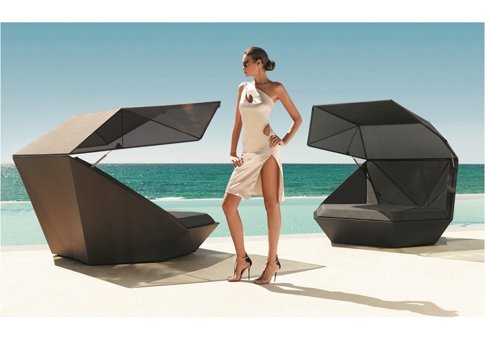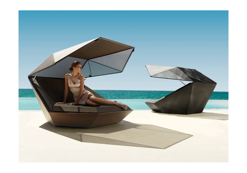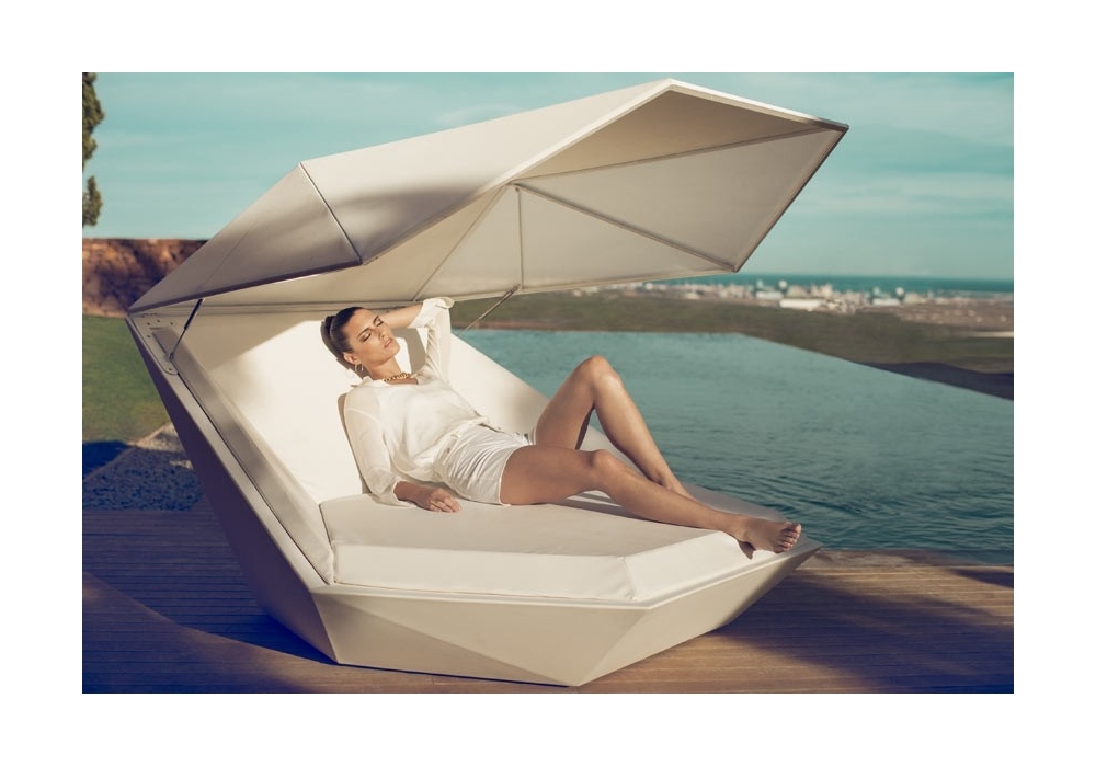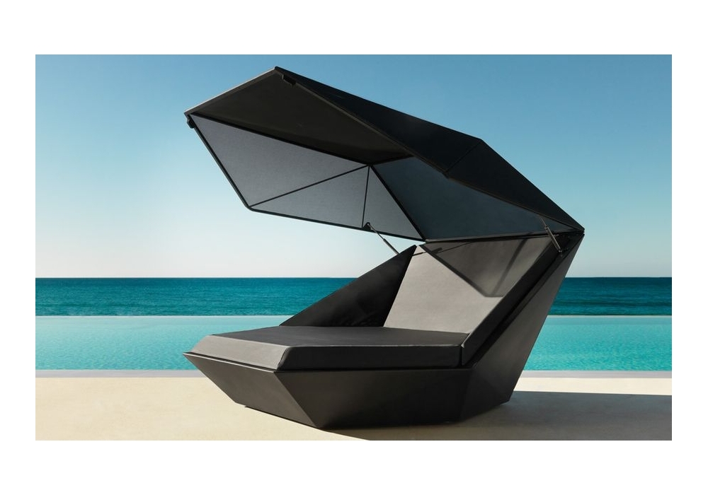 Faz von Ramón Esteve für Vondom entworfen, ist eine Daybed Mit Sonnenschutz  aus rotationsgeformtem Polyethylenharz und Stoffbezug. 100 % recycelbar. Geeignet für den Innen- und Außenbereich. Verfügbar in mehreren Ausführungen.