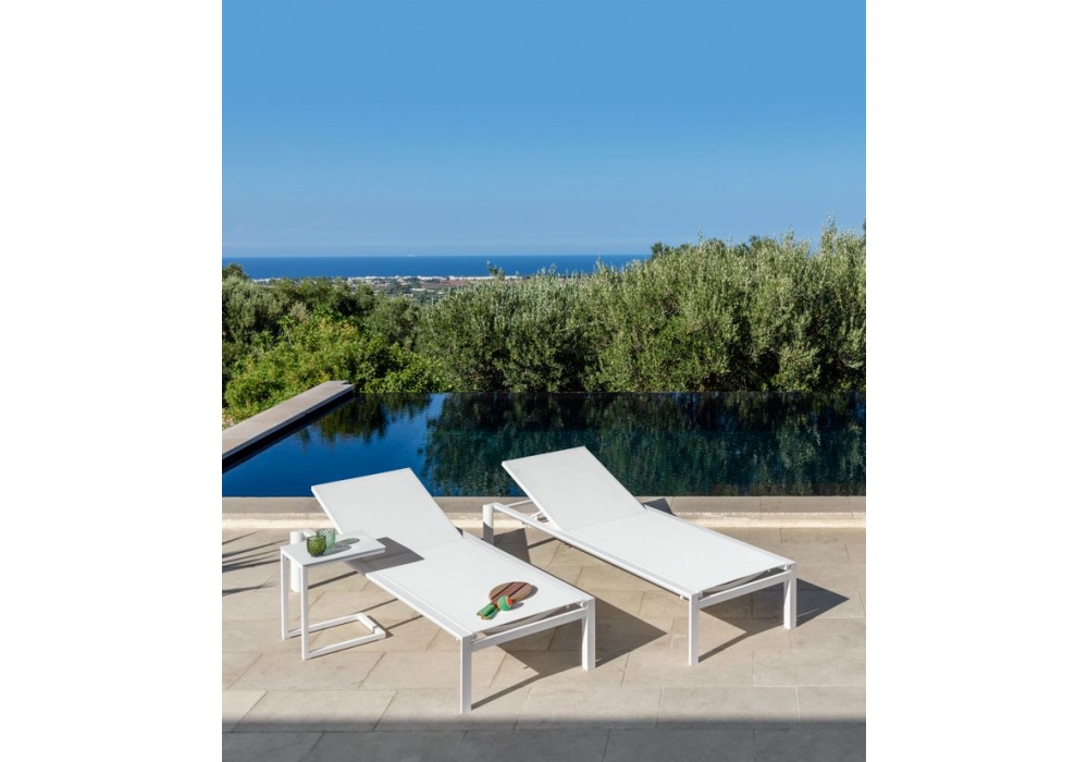 Nunù von Talenti entworfen, ist eine Sonnenliege aus Aluminium mit Stoffbezug. Erhältlich in verschiedenen Ausführungen.
