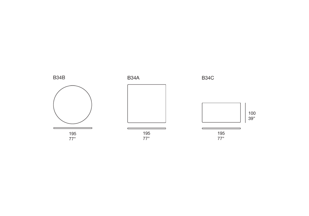 | Abmessungen | 195 x 195 x H 5 cm; Ø 195 x H 5 cm; 100 x 195 x H 5 cm. |