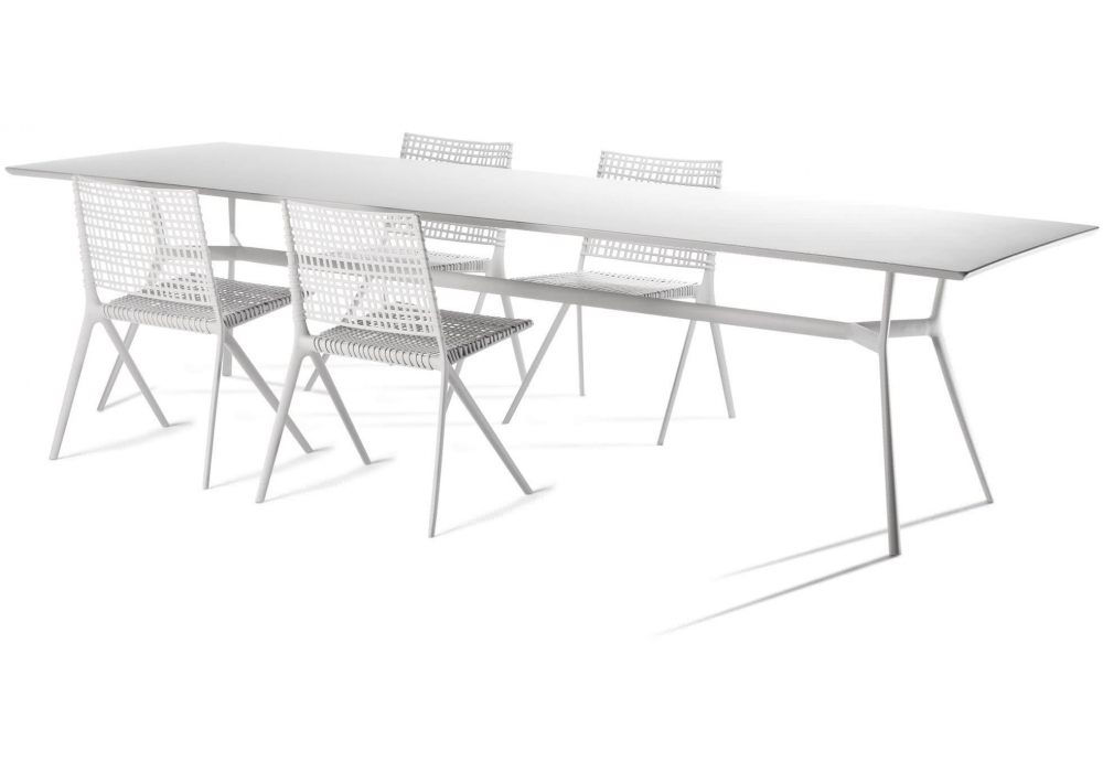 Branch von Altherr Lievore Molina für Tribù entworfen. Der Stuhl ist aus Rundprofilen aus Aluminium im Hochdruck, in Verbindung mit einem Sitz in Polypropylen mit Fiberglas injiziert gebaut. Es ist stapelbar und verfügbar mit oder ohne Armlehnen.