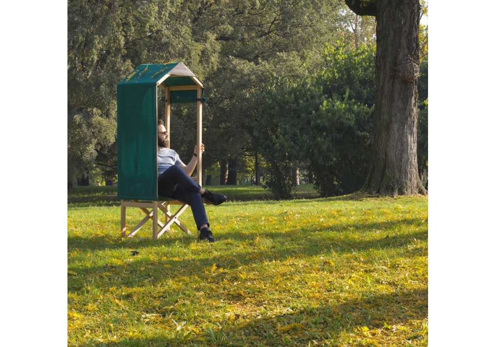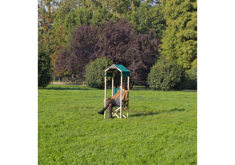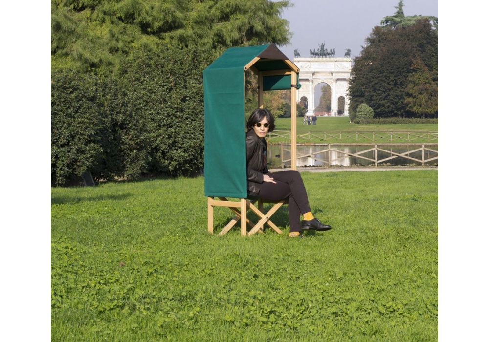 Rolo, von Giulio Iacchetti für InternoItaliano entworfen, ist einer Klappstuhl mit massiver Buche Holzstruktur und eine Leinwand Abdeckplane, die im angepasst werden kann Falle von Wind oder Sonne, macht es ähnlich wie eine Hütte. Rolo ist inspiriert von klassischen Regiestuhl.