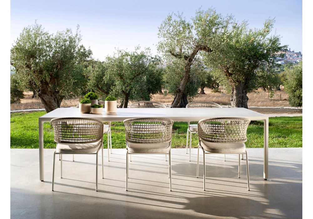 CTR von Piergiorgio Cazzaniga für Tribù entworfen ist ein Stuhl mit Pulverbeschichtetes rostfreier Stahl und der Sitz mit Gewebe in Tricord (Polyoléfine).