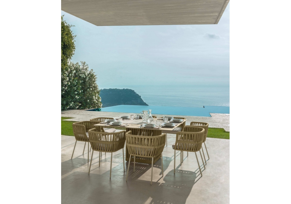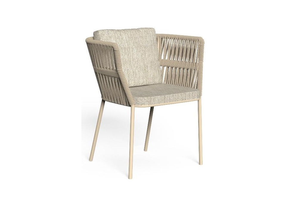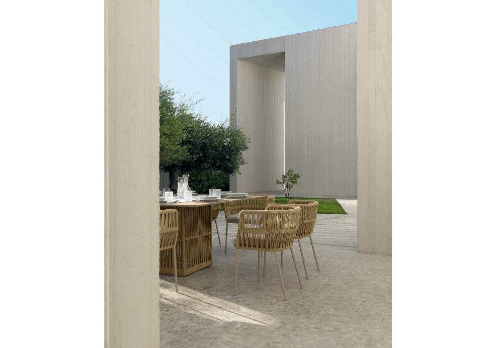 Cliff ist ein Stuhl, den Ludovica und Roberto Palomba für Talenti entworfen haben. Die Details sind mit ineinander verschlungenen Seeseilen gefertigt.