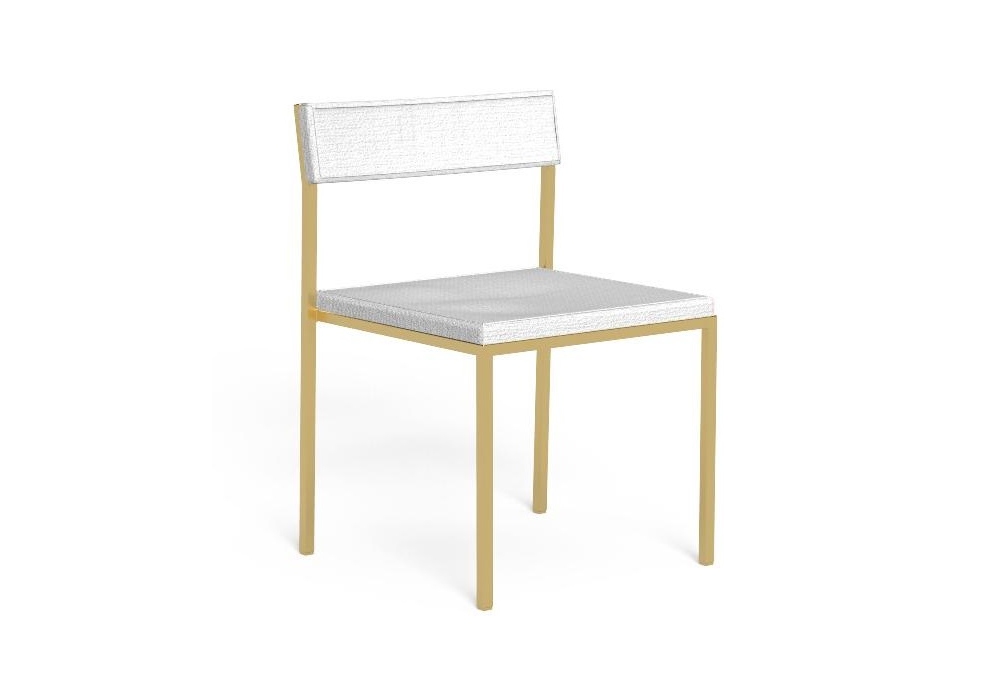 Casilda ist ein Stuhl, den Ràmon Esteve für Talents entworfen hat. Bestehend aus einer pulverbeschichteten Metallstruktur, entlang der Struktur angeordneten Polyesterbändern und einem mit Stoff bezogenen Kissen.