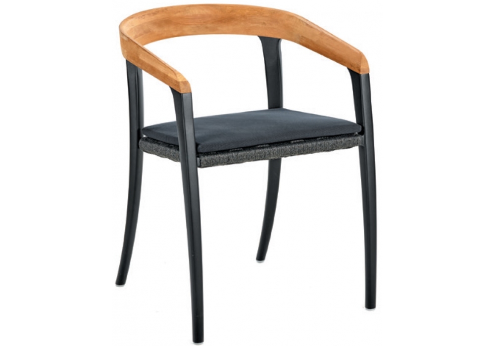 Jive Teak von Kris Van Puyvelde für Royal Botania entworfen, ist ein Stuhl mit Gestell aus Aluminium und Teakholz. Sitzkissen und Rückenkissen verfügbar in verschiedenen Stoffen.