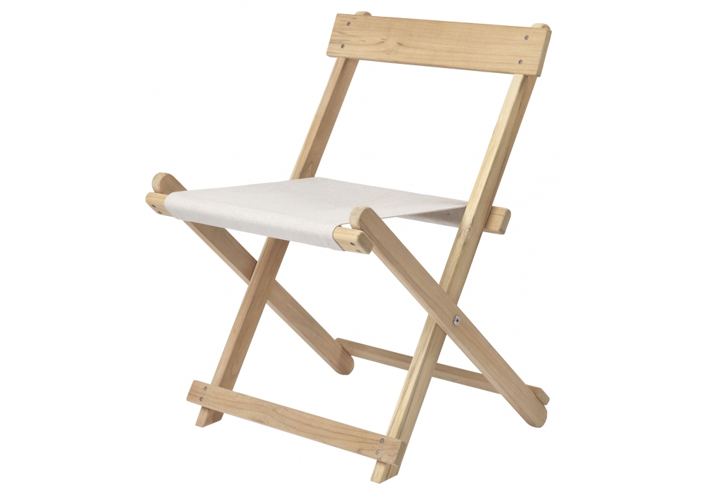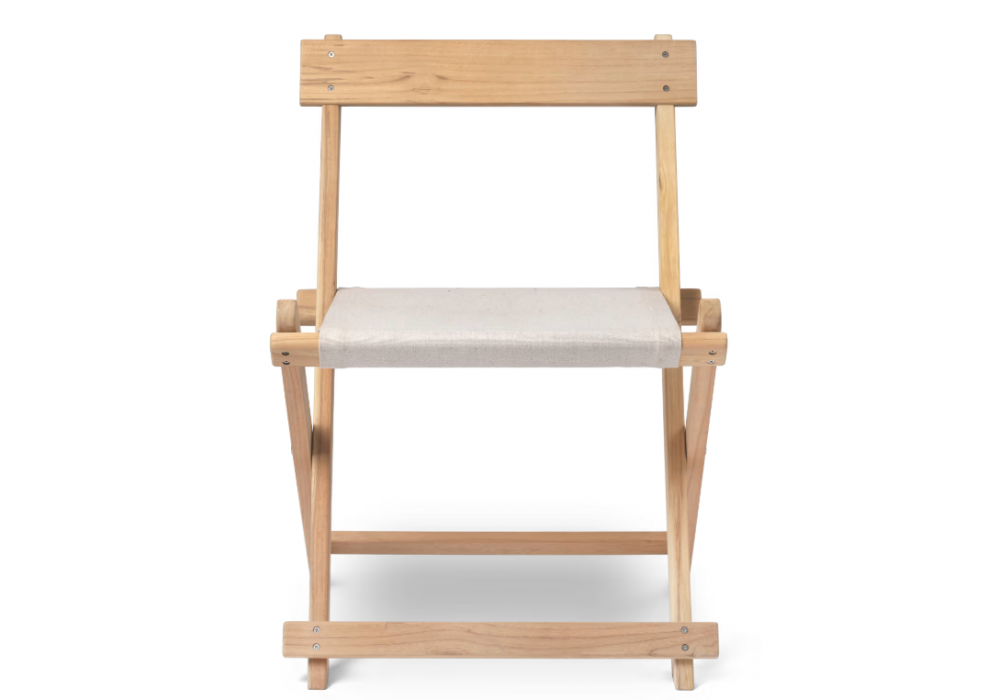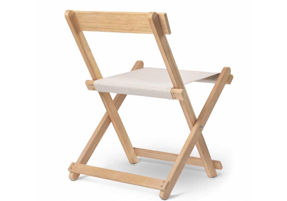 BM4570 von Børge Mogensen für Carl Hansen & Søn entworfen, ist ein Klappstuhl für den Außenbereich mit einem Rahmen aus massivem, unbehandeltem Teakholz und einem Sitz aus Stoff Heritage Papyrus 18006. Die Gelenke sind immer aus Edelstahl.