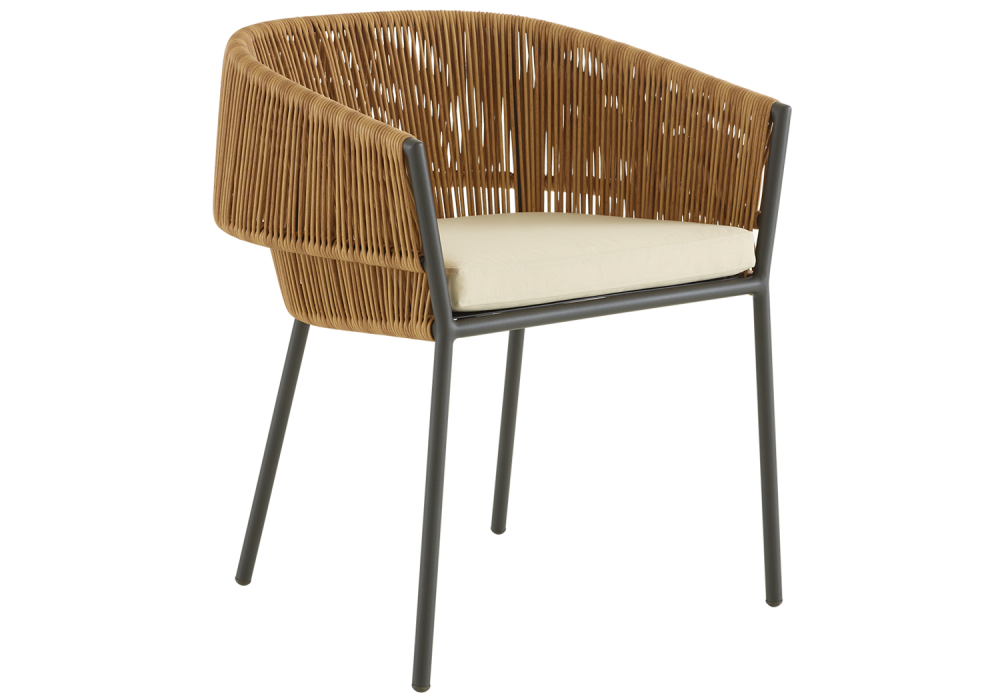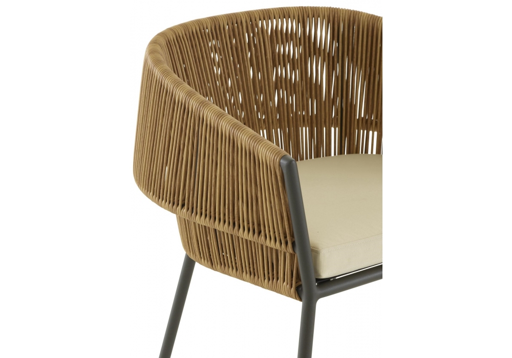 Lapel von Busetti Garuti Redaelli für Ligne Roset entworfen, ist ein Outdoor-Stuhl mit Gestell aus charbonlackiertem Aluminium, Rückenlehne aus gewebtem synthetischem Rattan und Sitzpolsterung aus Polyurethanschaum, der mit beigem 100% Polyestergewebe bezogen ist.