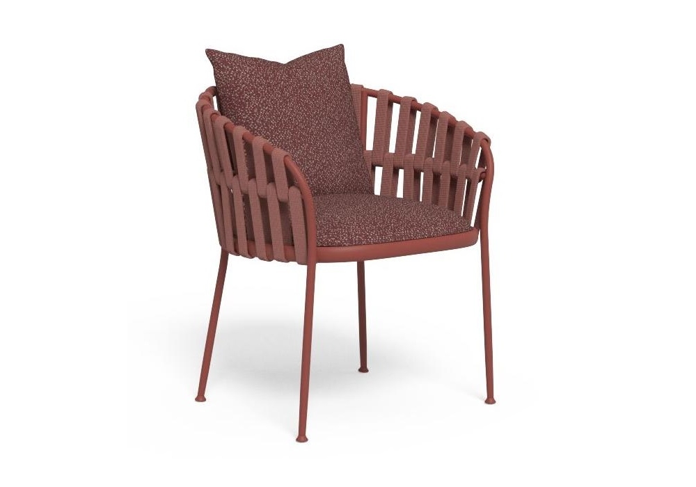 Frame von Ludovica + Roberto Palomba für Talenti entworfen, ist ein Stuhl für den Außenbereich. Struktur aus pulverbeschichtetem Aluminium. Rückenlehnenstruktur mit einem Geflecht aus dicken weichen Kordeln. Die Kissen haben abnehmbare Bezüge und sind mit wetterbeständigen Outdoor-Stoffen bezogen.