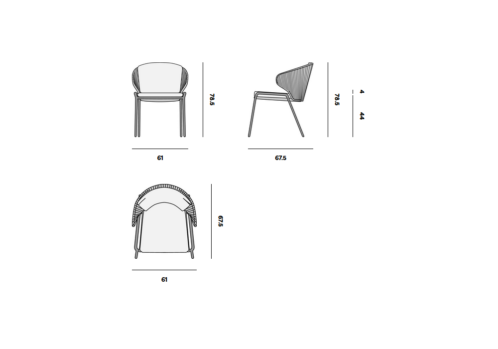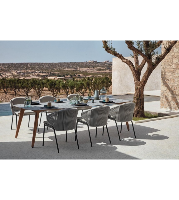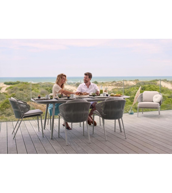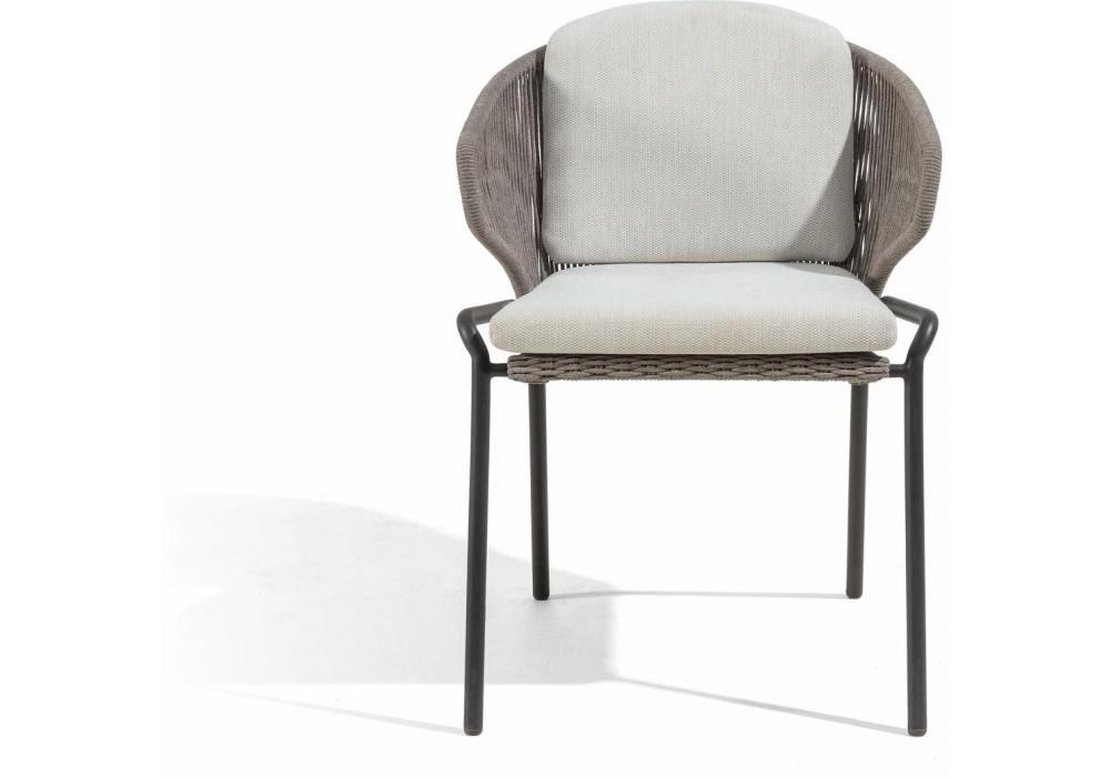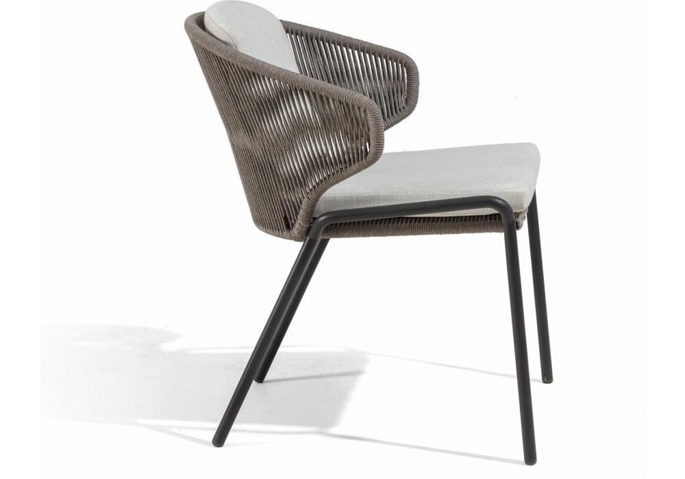 Radius von Stephane De Winter für Manutti entworfen, ist ein kleiner Sessel mit einer Edelstahlstruktur und gewebtem Seil. Polsterung der Kissen in Stoff. Erhältlich in verschiedenen Ausführungen.