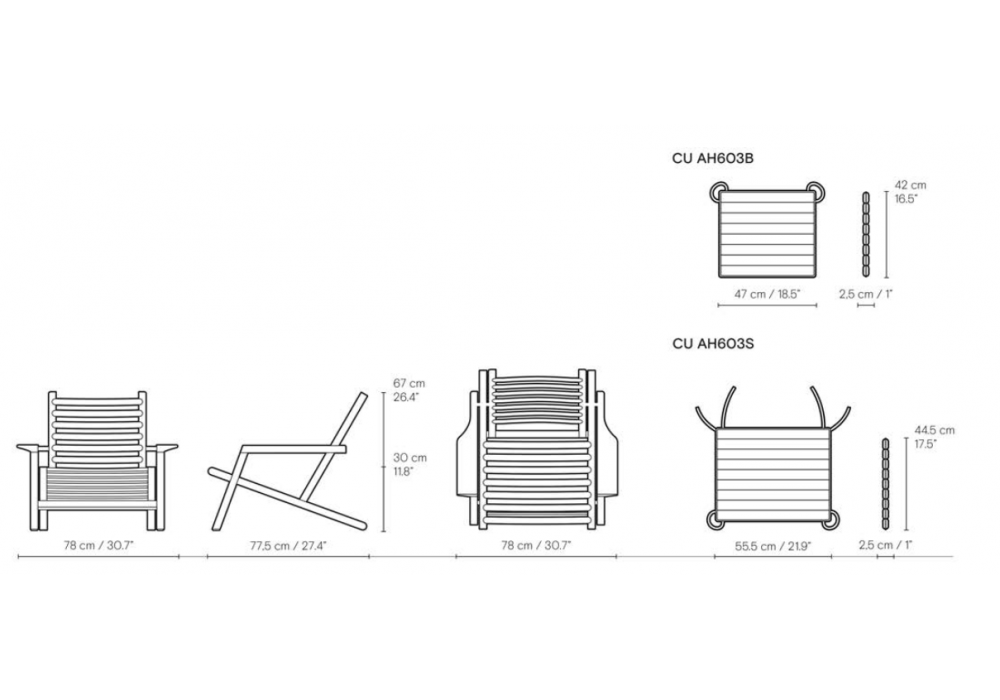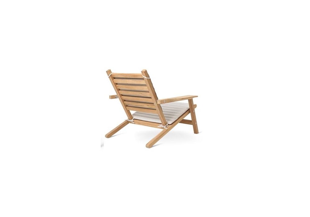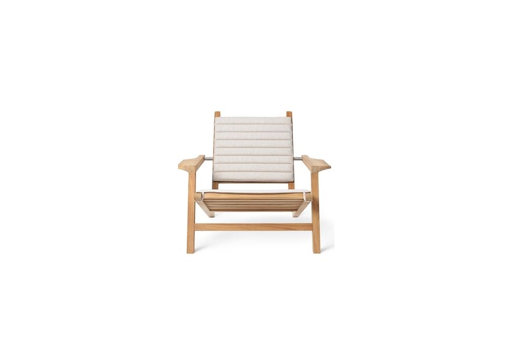 AH603 von Alfred Homann für Carl Hansen & Søn entworfen, ist ein Gartenstuhl mit Armlehnen mit Gestell aus massivem Teakholz. Erhältlich mit oder ohne Sitz- oder Rückenkissen, bezogen mit Stoff Agora Life Oat 1760.