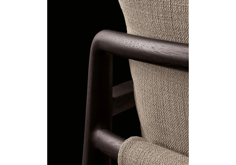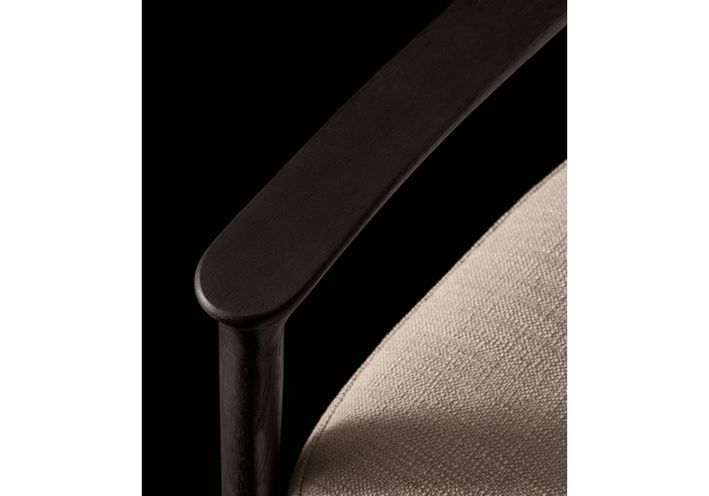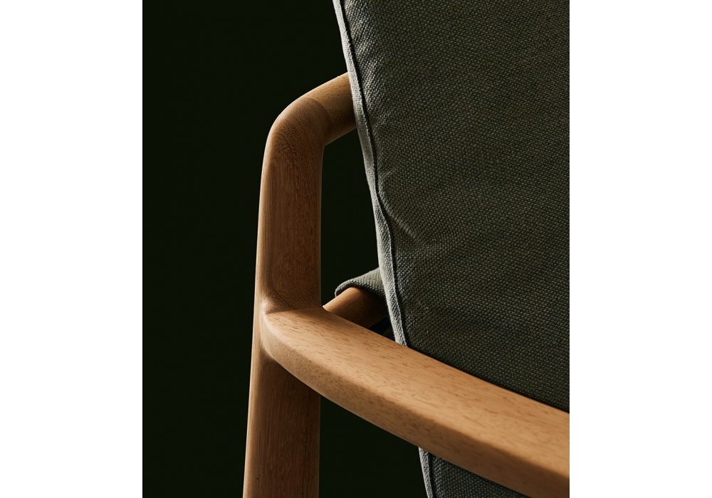 Magnolia von Emmanuel Gallina für Poliform entworfen, ist ein Stuhl mit Struktur aus massivem Iroko natur oder schwarz gebeiztem Iroko. Sitz- und Rückenkissen aus recyceltem PET-Polyester mit Polyurethan-Einlage. Vorbespannung aus Polyesterfaser mit heißversiegelten Nähten. Abnehmbarer Stoffbezug.