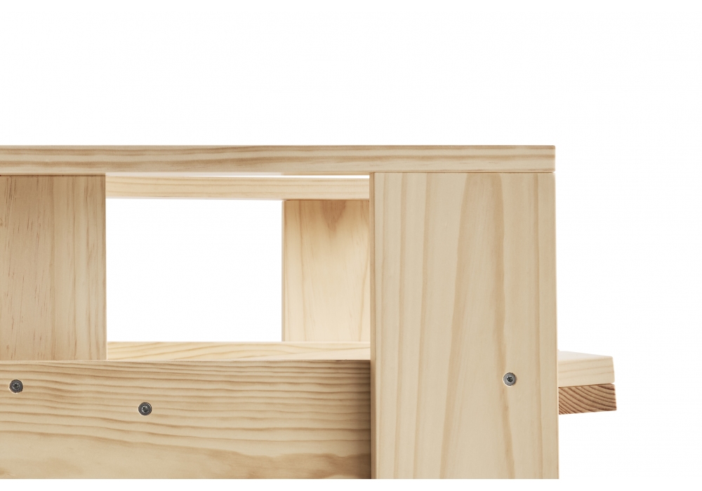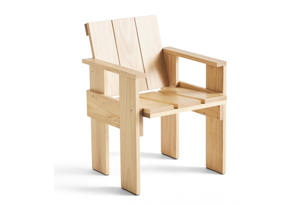 Crate, von Gerrit Rietveld für Hay entworfen, ist ein Stuhl aus wasserlackierter massiver Radiata-Kiefer. Behandelt mit einem 3-Schicht-Außenlack; eine Grundierung und zwei Decklacke.