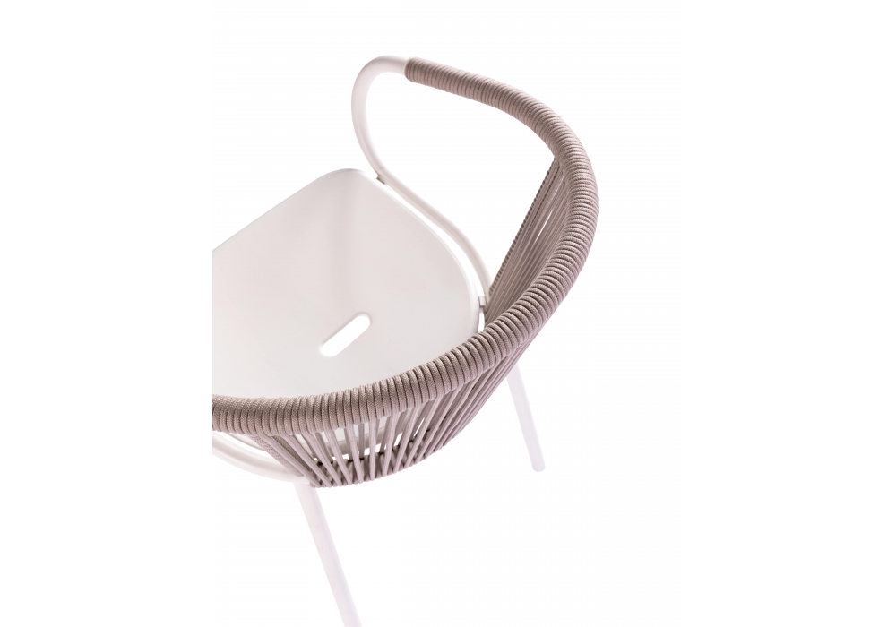 Gilda Lido von Scholten & Baijings für Cappellini entworfen, ist ein Armstuhl aus Edelstahl AISI 304 und Aluminium mit handgeflochtener Rückenlehne und Armlehnen. Möglichkeit, ein abnehmbares Sitzkissen hinzuzufügen.