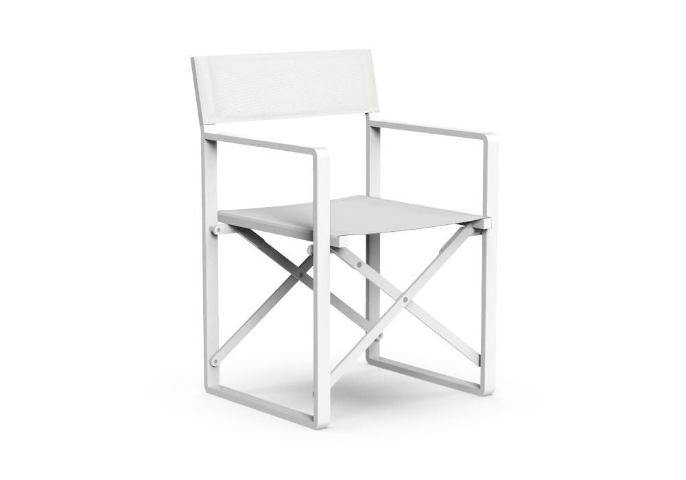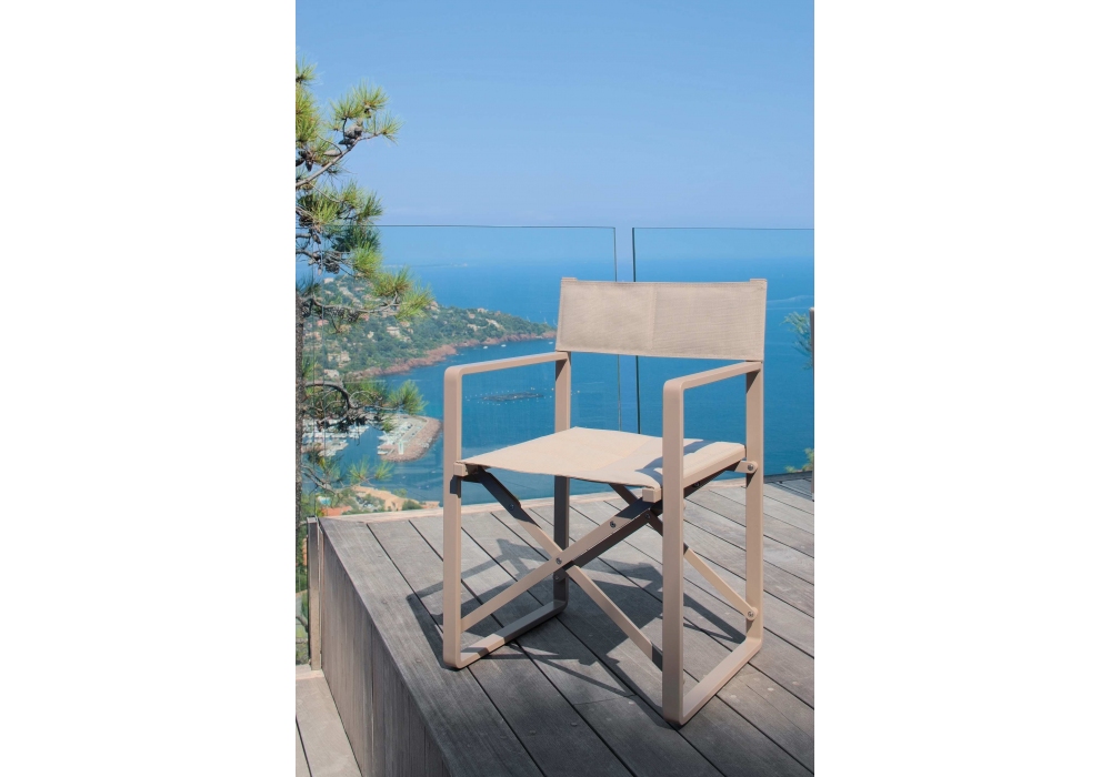 Chic von Talenti entworfen, ist ein Regiestuhl aus Aluminium mit Stoffbezug. Erhältlich in verschiedenen Ausführungen.