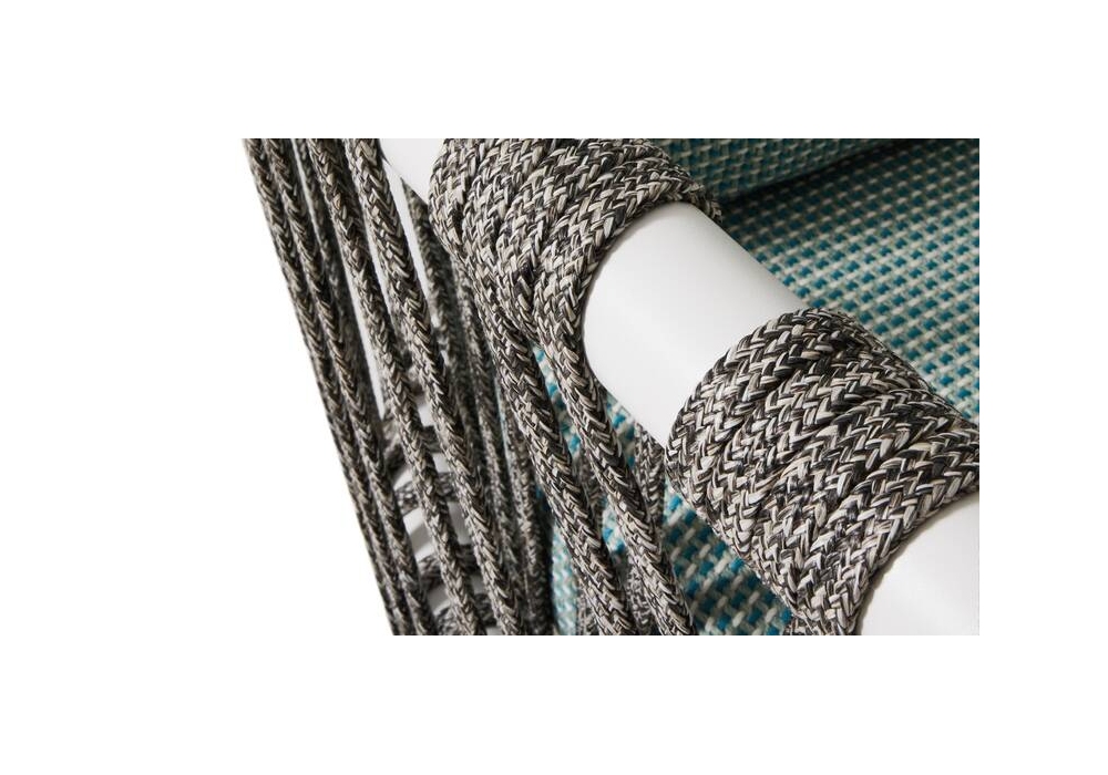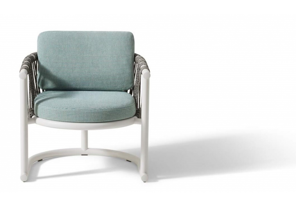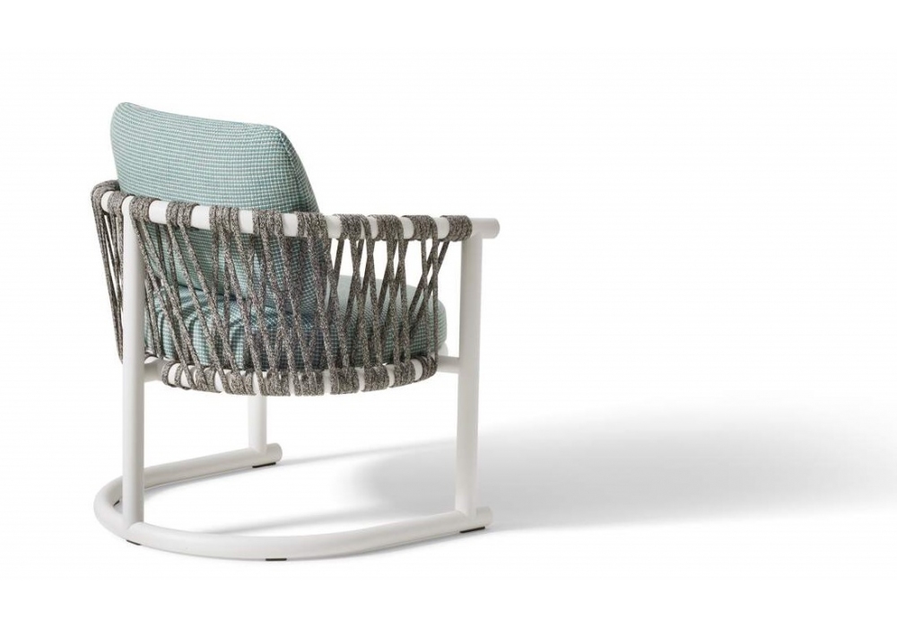 Trampoline 561 von Patricia Urquiola für Cassina entworfen, ist ein lounge Stuhl mit pulverbeschichteter Aluminiumstruktur, Kissen aus Polyurethanschaum mit einem Anteil an Polyolen biologischen Ursprungs, überzogen mit weicher PET-Faserwatte und wasserabweisendem Polyestergewebe. In zwei Versionen vorgeschlagen.