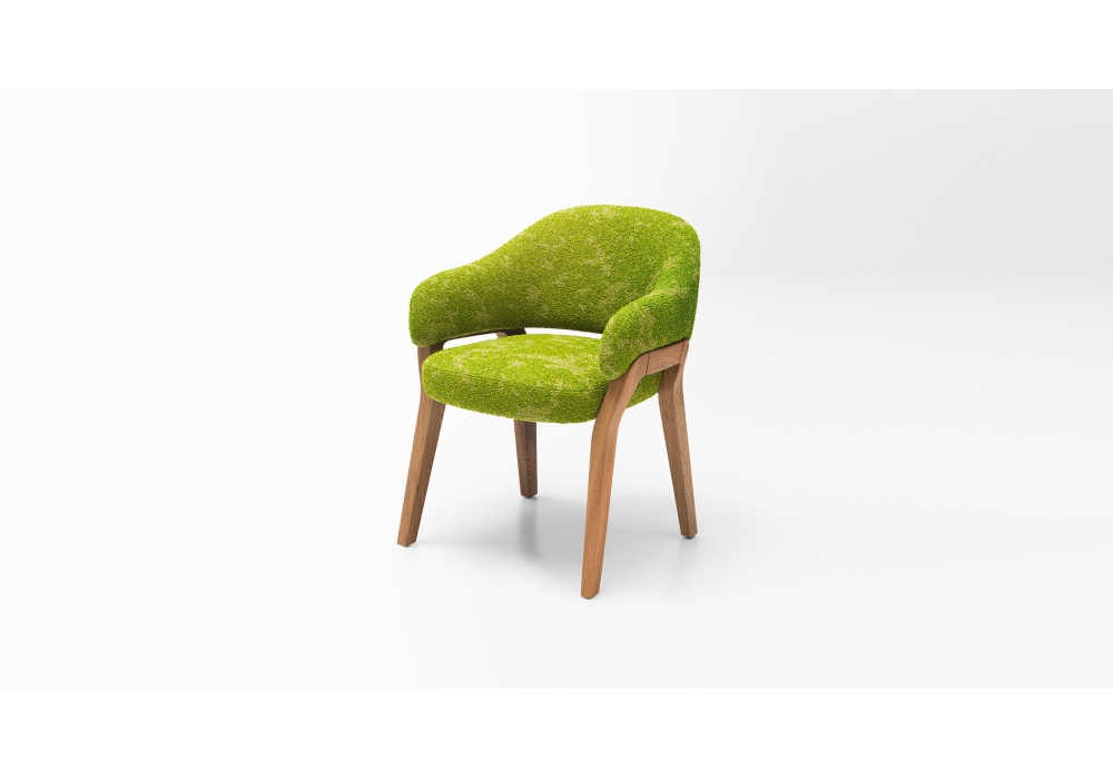 Sabrina von Espen Øino für Paola Lenti entworfen, ist ein Tischsessel mit Beinen aus massiver Eiche mit wasserbasierter oder glänzend lackierter Hydro-Öl-abweisender Oberfläche. Sitz komplett mit elastischen Gurten, Polsterung aus Polyesterfaser, festes Futter aus wasserabweisendem Polyester. Stoffbezug in verschiedenen Ausführungen.