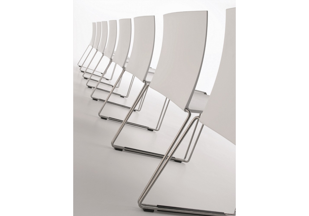 M1 von Piergiorgio Cazzaniga für MDF Italia entworfen, ist ein stapelbarer Stuhl mit Sitzschale aus matt weißem Kunststoff. Untergestell aus Edelstahl, verchromt oder matt weiß lackiert. Kann sowohl im Innen- als auch im Außenbereich verwendet werden.