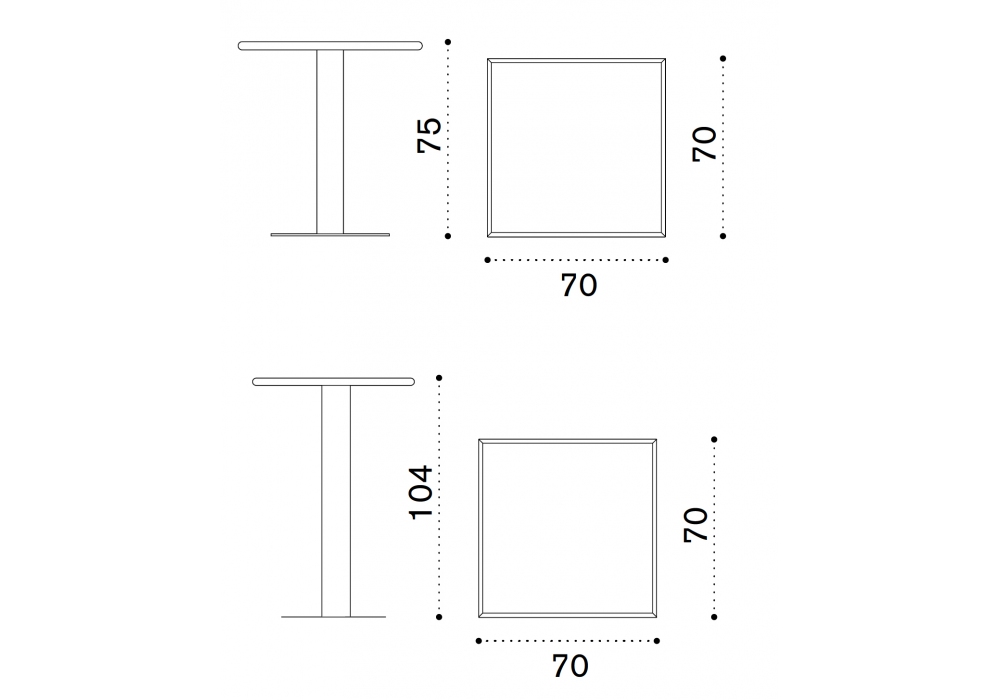 | Abmessungen | 70 x 70 x H 75 cm; 70 x 70 x H 104 cm. |