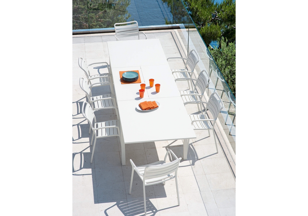 Flat, hergestellt und entworfen von Ethimo, ist ein rechteckiger Gartentisch mit lackierter Metallstruktur und ausziehbarer Platte. Erhältlich in verschiedenen Ausführungen und Größen.