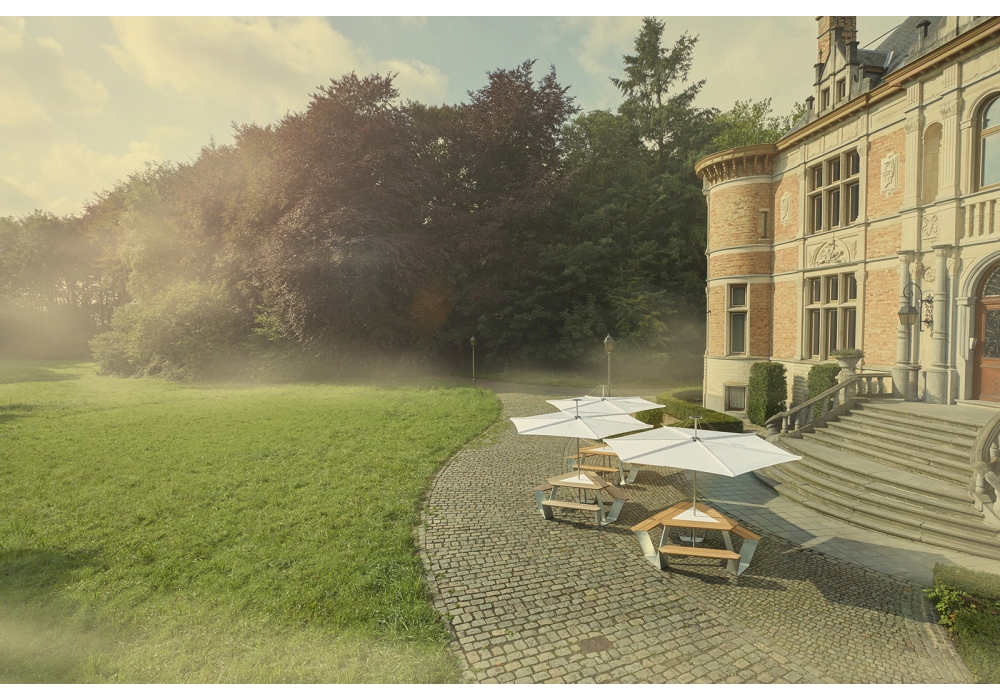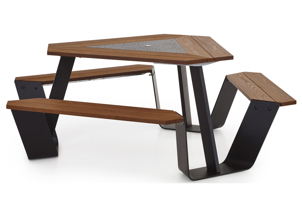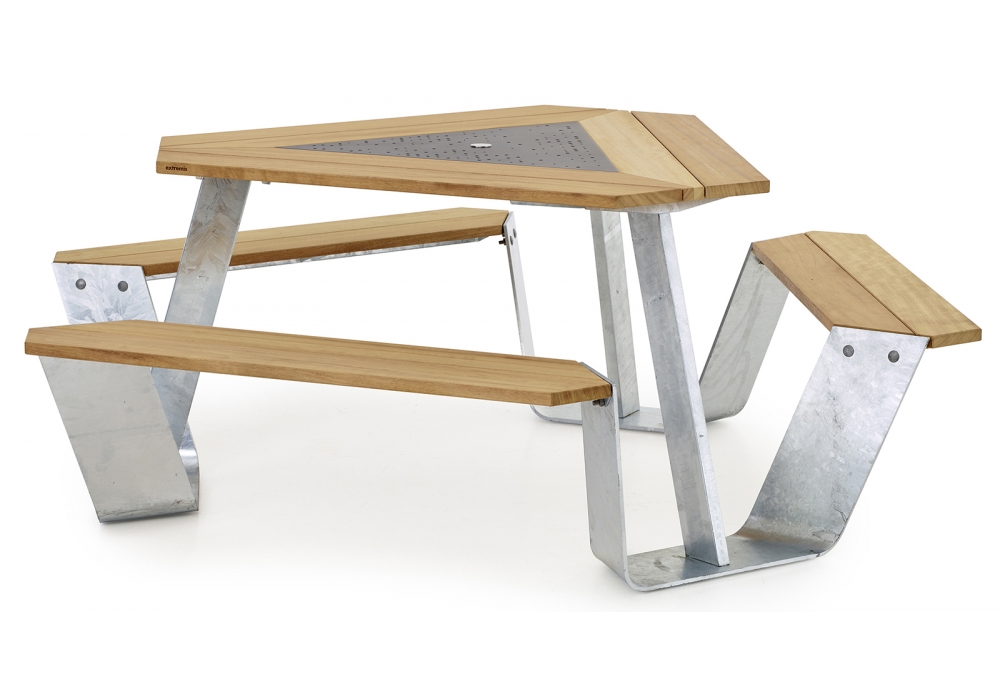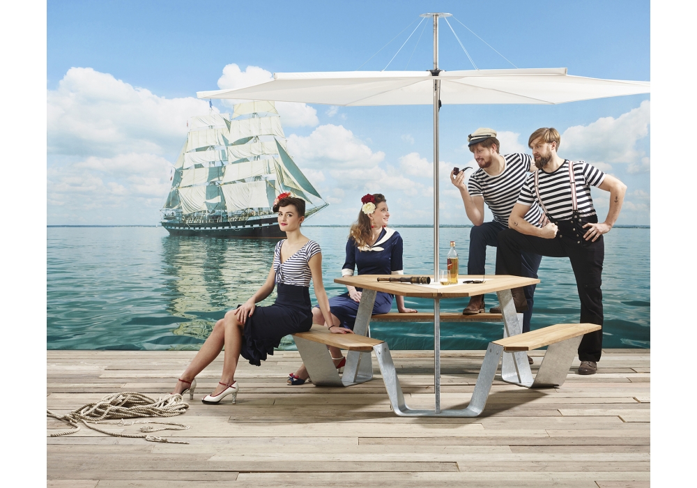 Anker, von Dirk Wynants für Extremis entworfen, ist einer Tisch für Picknick mit Stahlkonstruktion und Holzplatte. In Kombination mit dem Inumbrina Sonnenschirm ist es ein toller Blickfang. Erhalten Sie kreativ mit den verschiedenen Farben des Holzes und des Stahls, um Ihre Lieblingskombination zu bilden, die Ihrem Leben entspricht.
