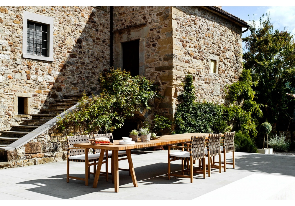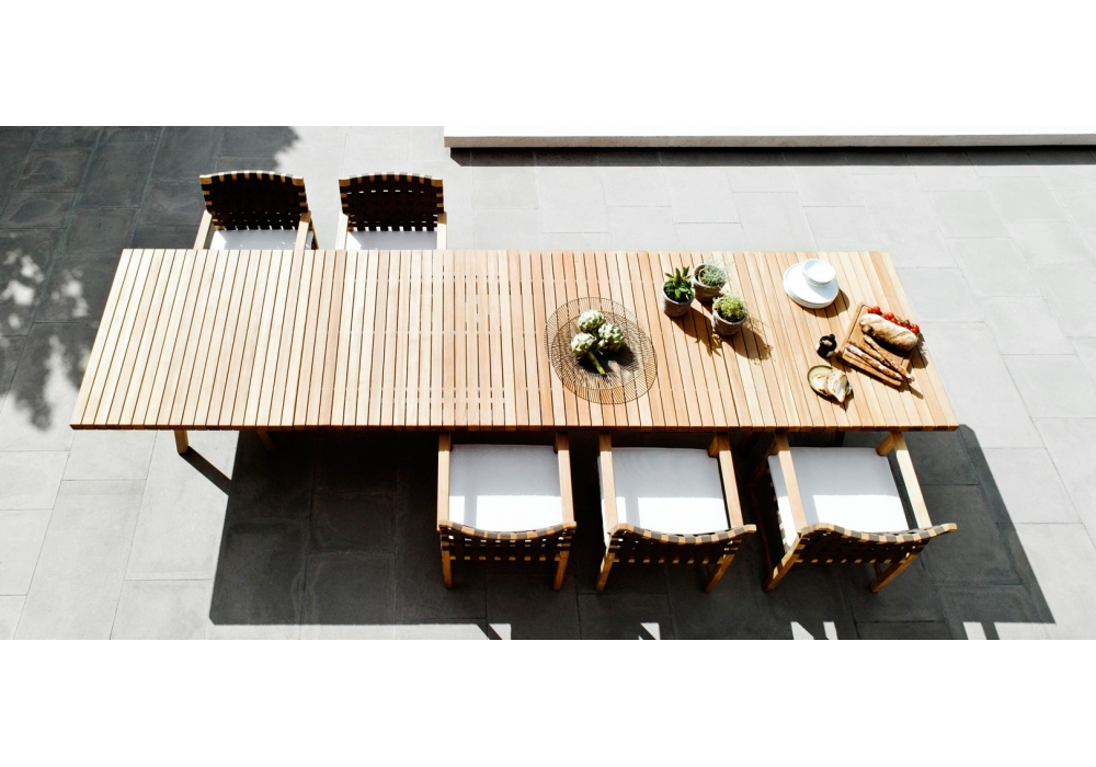 Vis à Vis, von Piergiorgio Cazzaniga für Tribù entworfen, ist ein Tisch im Teakholz. Es ist in verschiedenen Größen erhältlich.