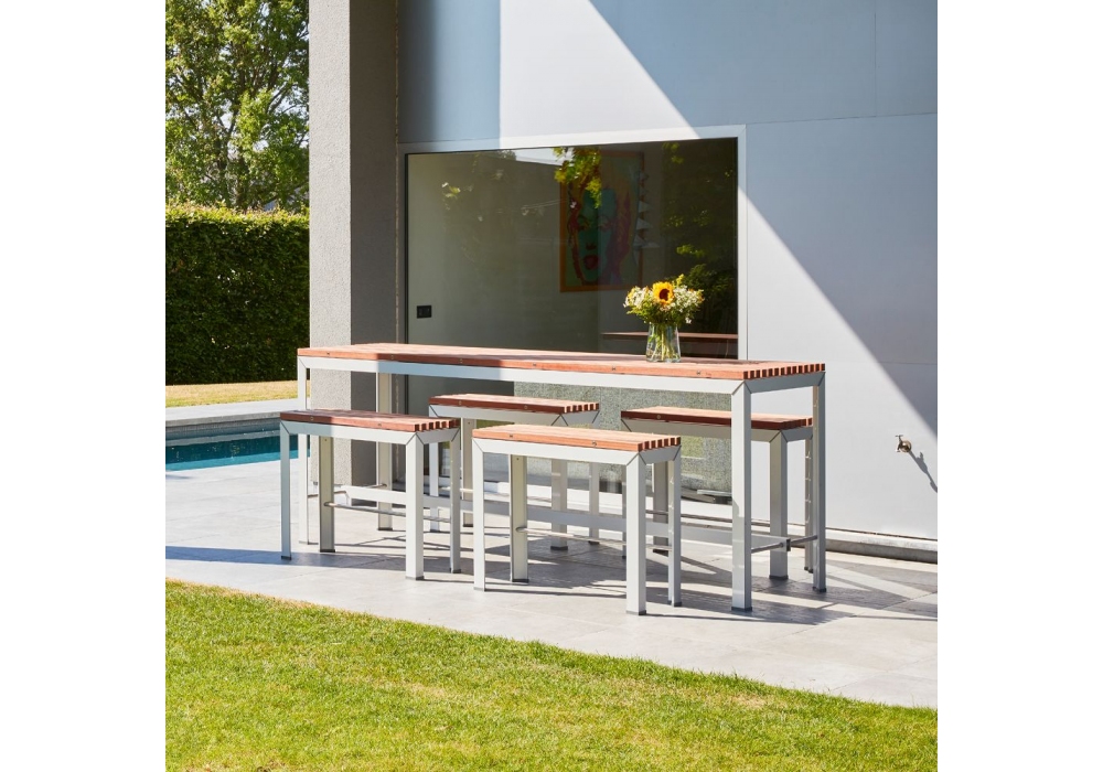 Extempore, von Arnold Merckx für Extremis entworfen, ist einer Tisch realisiert mit Aluminium, Stahl und Jatoba Holz. Die Extempore-Serie eignet sich aufgrund der hohen Qualität des verwendeten Materials hervorragend dafür, das ganze Jahr im Freien genutzt zu werden. So ist Extempore ein besonders vollständiges und modulares Außenmöbelsortiment, das wirklich alle Funktionen kombiniert: Sitzen, Essen, Liegen, Entspannen, Lesen. Verfügbar in mehreren Größen.