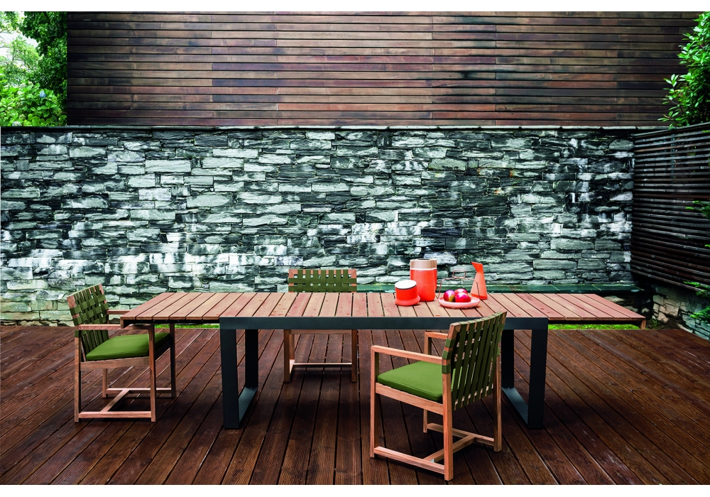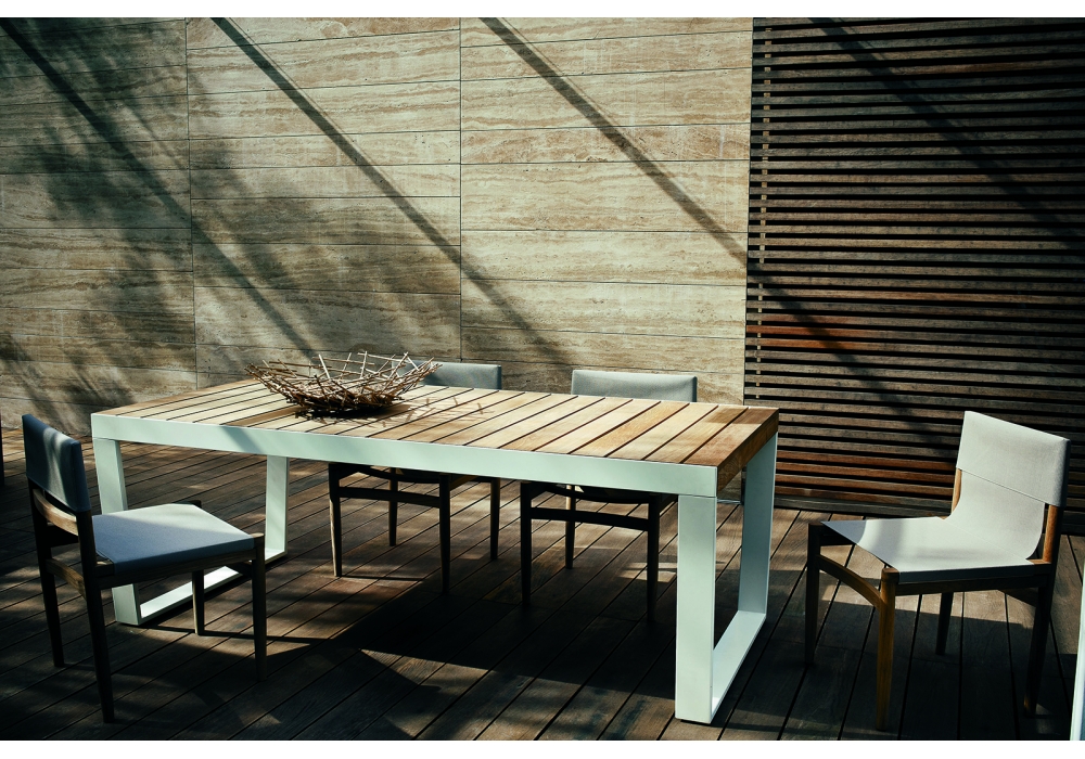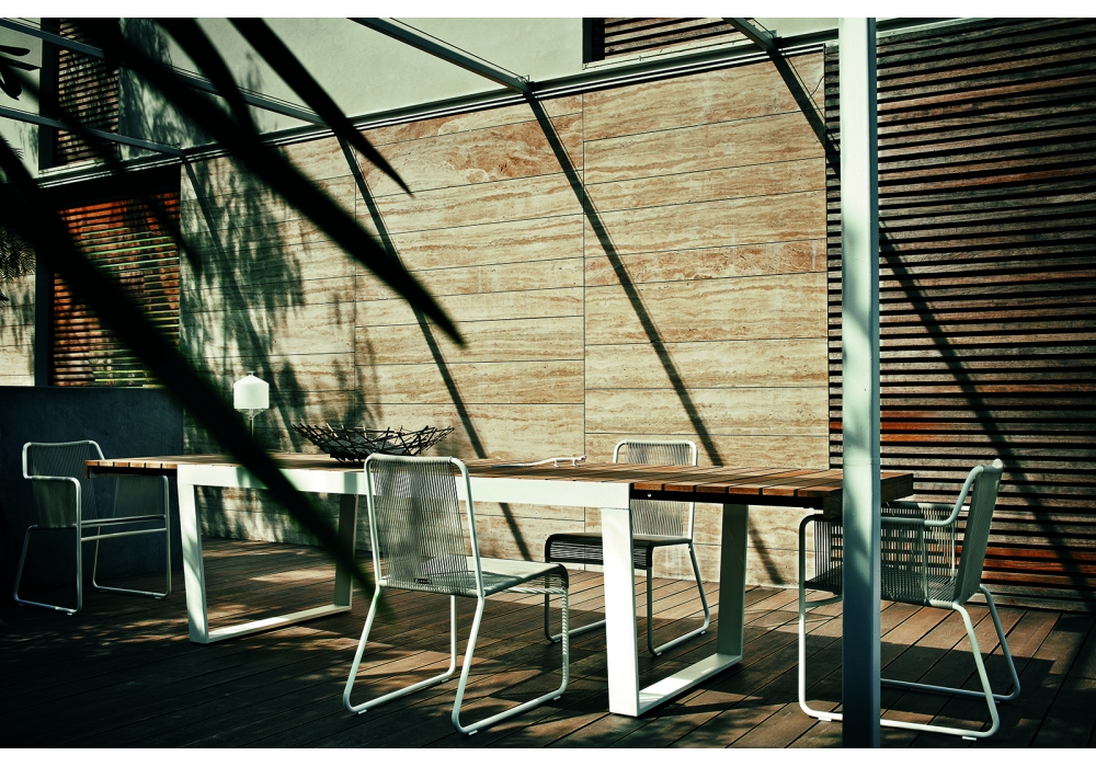 Spinnaker 034, von Gordon Guillaumier für Roda entworfen, ist einer Tisch ausziehbarer Tisch für den Außenbereich mit pulverbeschichtetem Edelstahl-Struktur und aus Tischplatte Teak. Der Spinnaker-Tisch ist in der Lage, bis zu zwölf Personen bequem zu sitzen und zieht seine ausdrucksvolle Kraft aus einem schweren und extrem modernen Design, das gleichzeitig die Festigkeit des Materials und die Leichtigkeit der Spitze hervorhebt. Struktur in zwei Ausführungen Verfügbar.