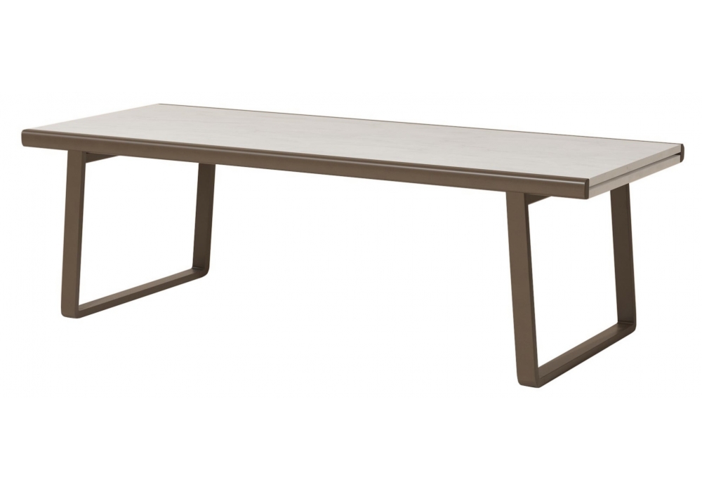 Bitta von Rodolfo Dordoni für Kettal entworfen ist ein ausziehbarer Esstisch mit einer Tragstruktur aus lackiertem Aluminium und einer viereckigen Platte aus Aluminium, Teakholz, Travertin oder Marmor. Bitta ist in verschiedenen Ausführungen erhältlich.