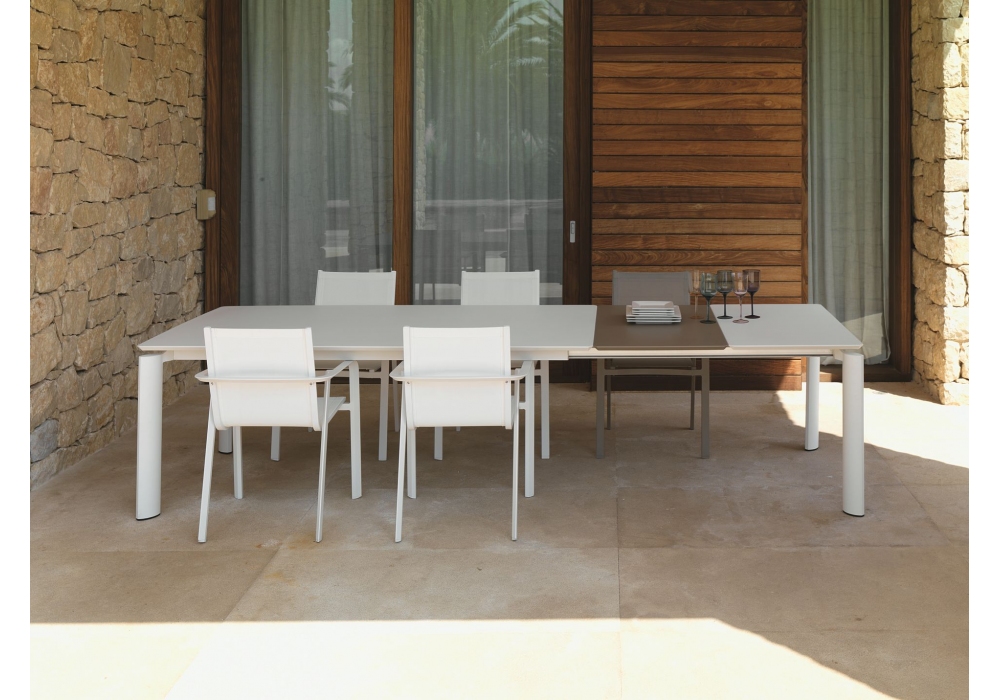 Milo ist ein Esstisch, den Marco Acerbis für Talenti entworfen hat. Der Tisch mit der Platte aus Aluminium kann erweitert werden, um Platz für andere Sitzgelegenheiten zu bieten. Die Milo-Kollektion ist die perfekte Lösung, um Ihren Außenbereich einzurichten.